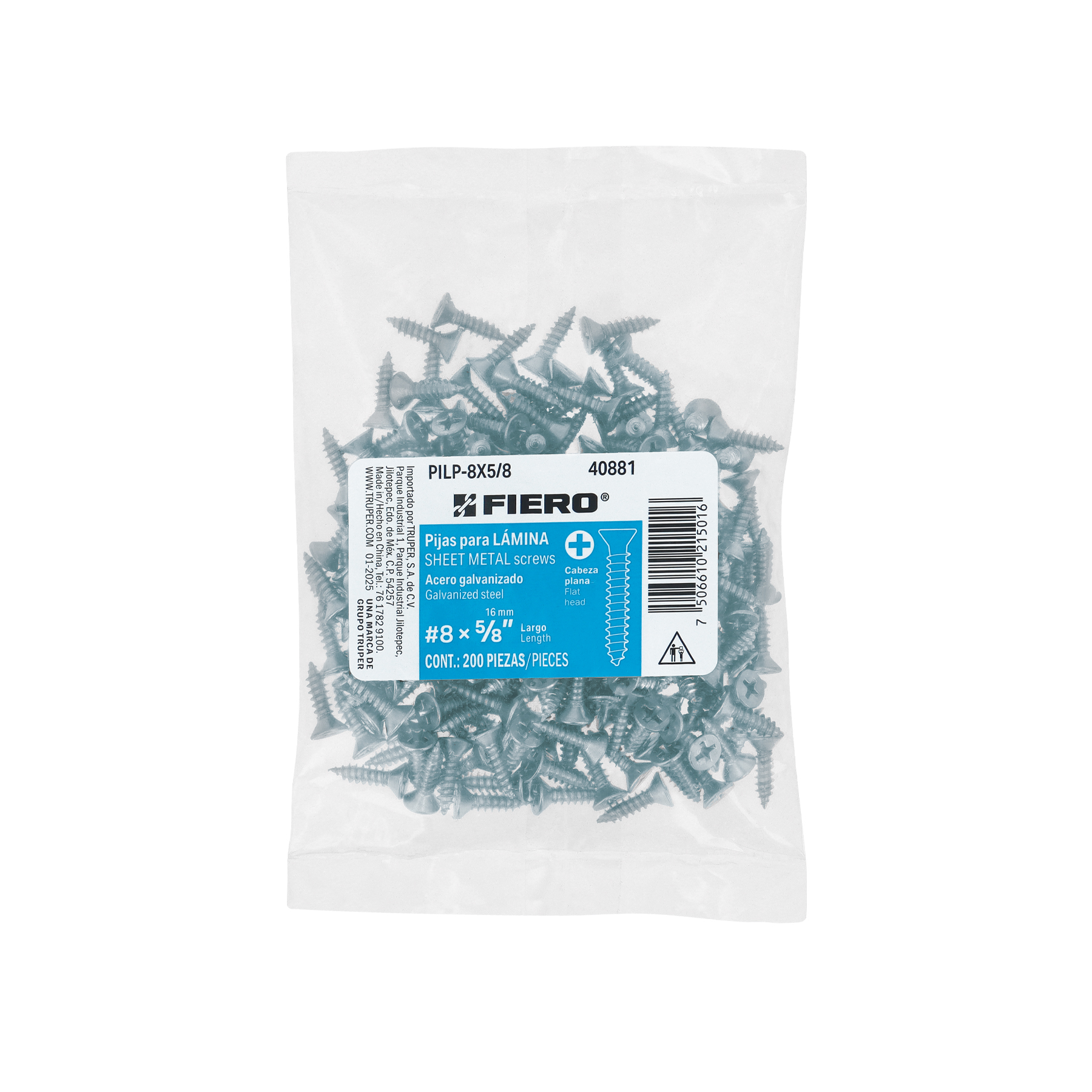 Bolsa 200 pijas para lámina cabeza plana #8 x 5/8", FIERO