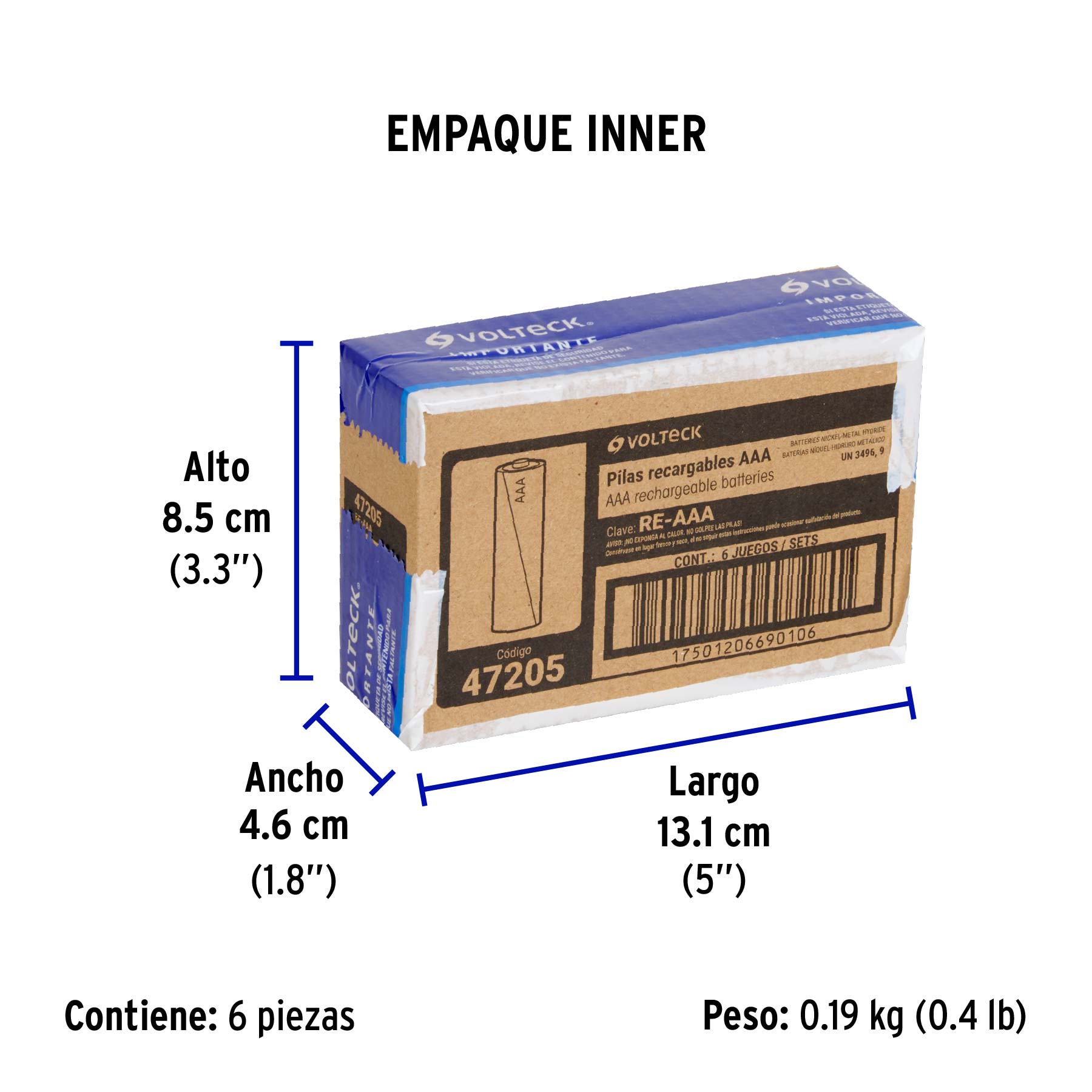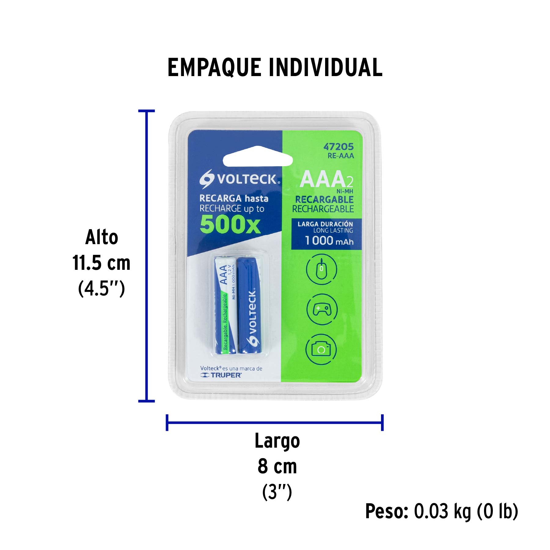 Blíster con 2 pilas recargables AAA larga duración, 1000 mAh