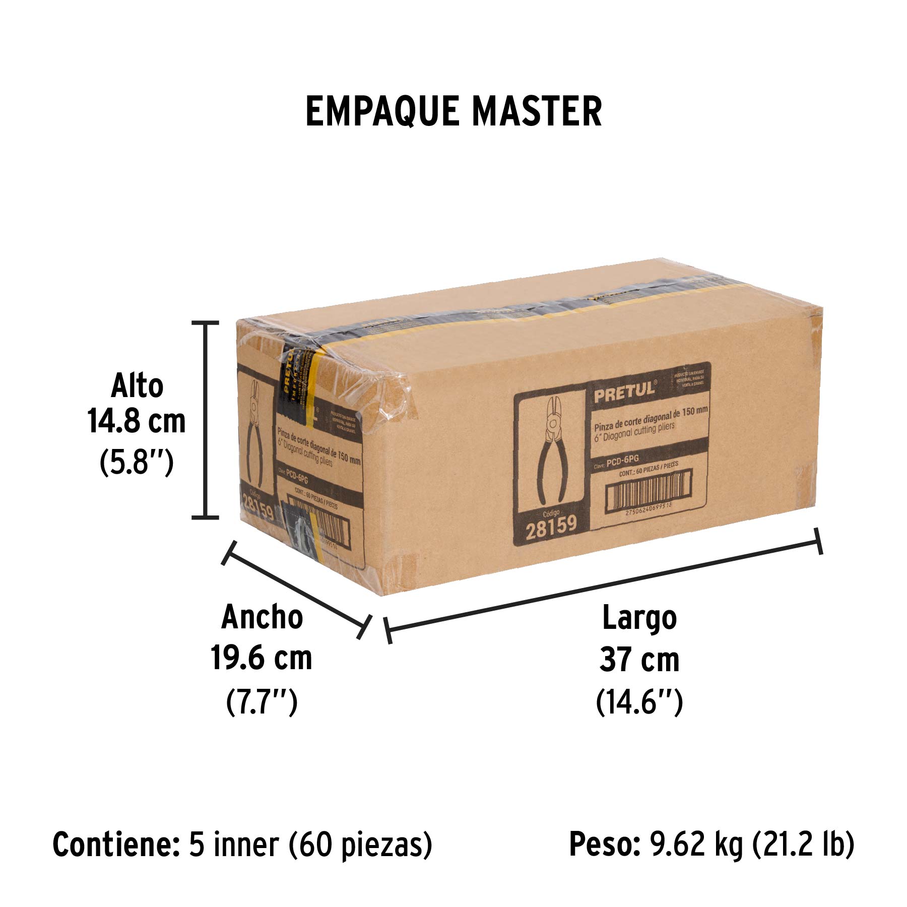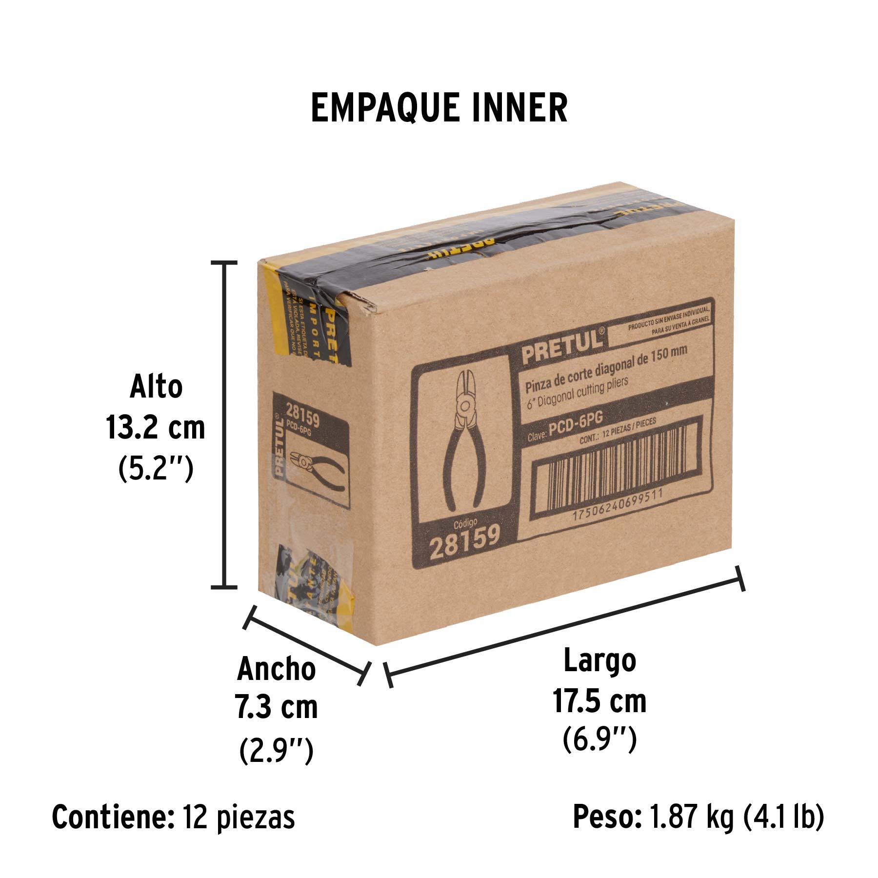 Pinza de corte diagonal 6" mango de vinil, a granel, PRETUL