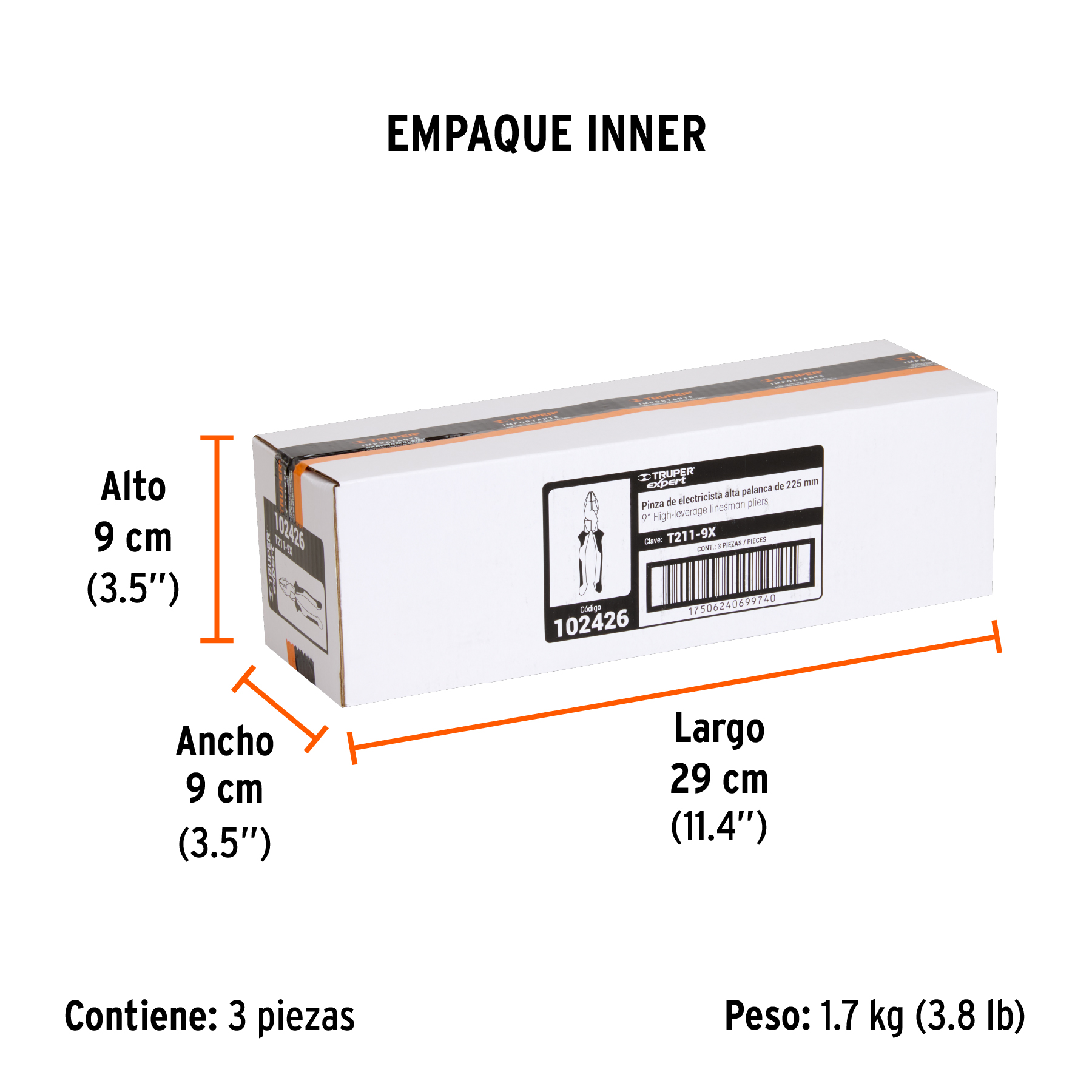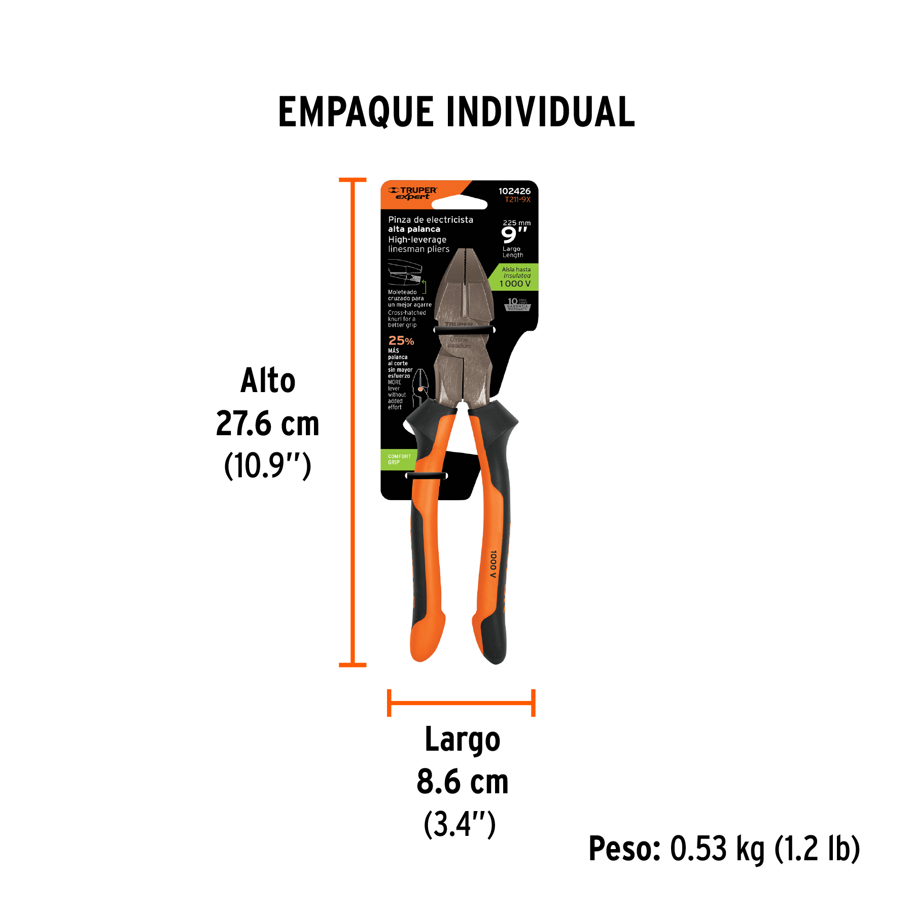 Pinza para electricista 9" alta palanca mango Comfort Grip