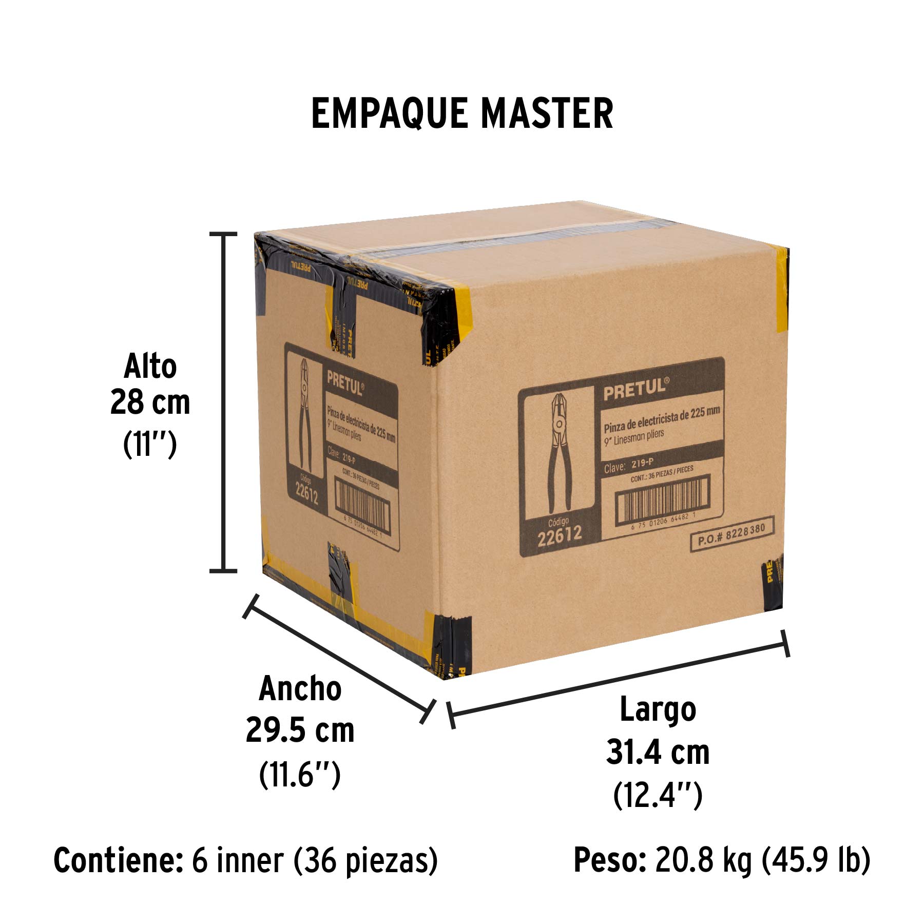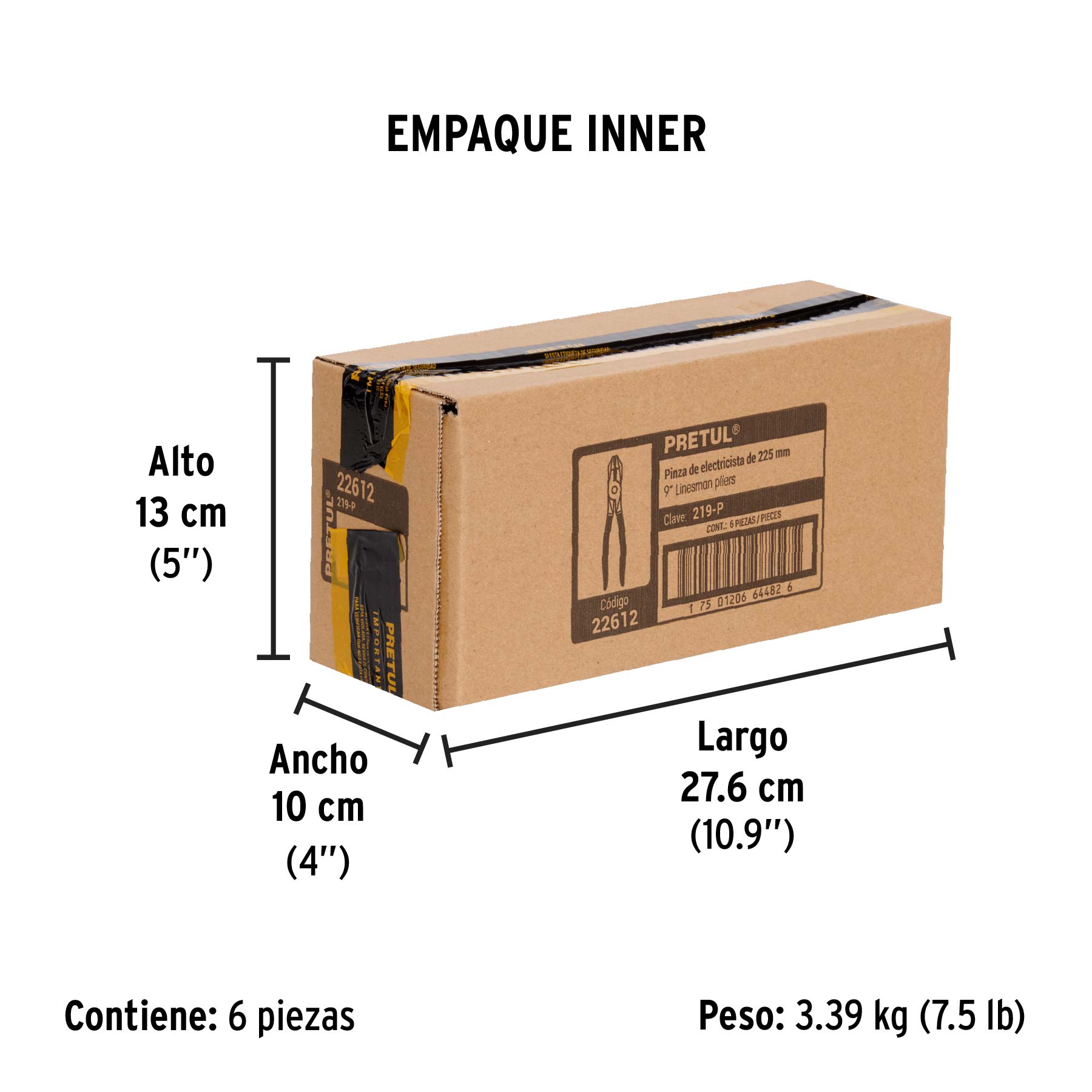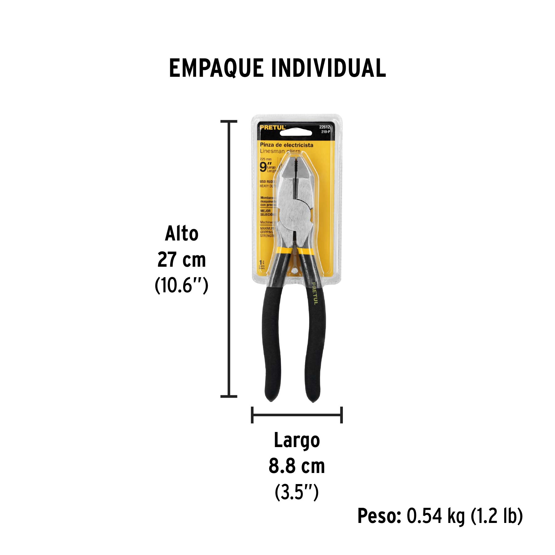 Pinza para electricista 9" uso rudo, mango de PVC, PRETUL