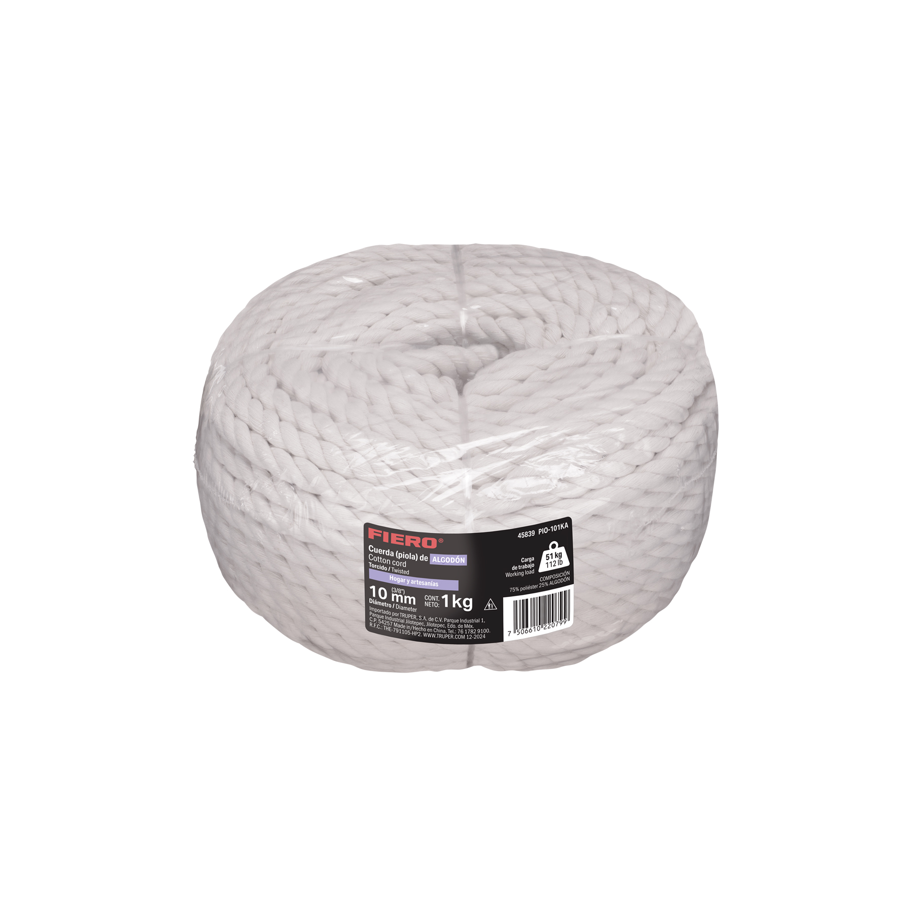 Piola de algodón de 10 mm, rollo, natural, 1 kg, FIERO