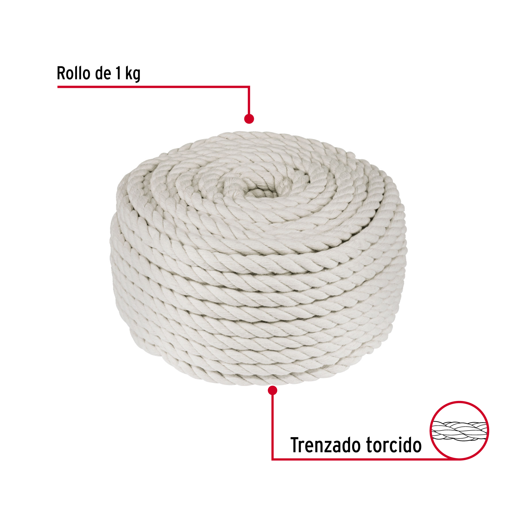Piola de algodón de 6 mm, rollo, natural, 1 kg, FIERO