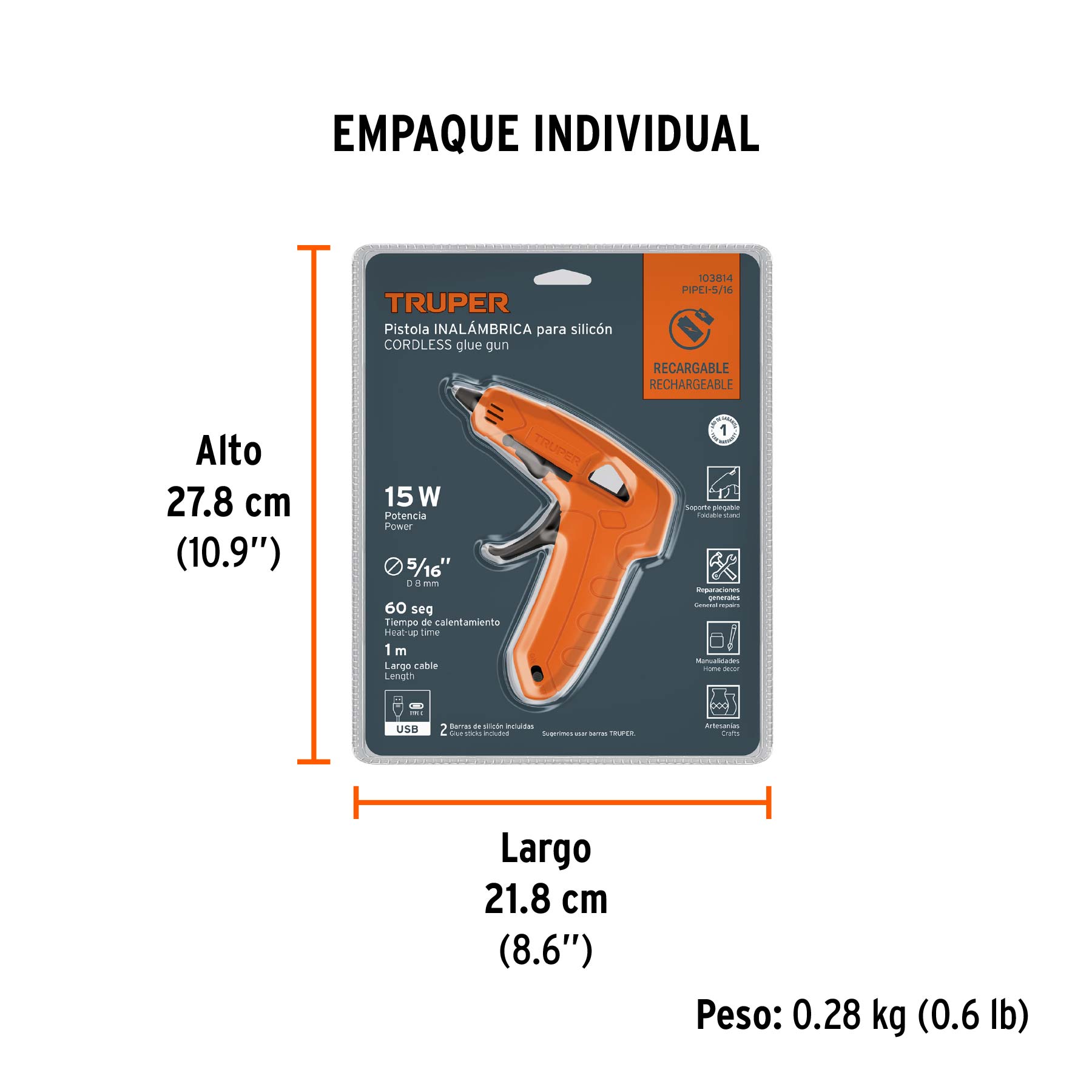 Pistola inalámbrica de 3.7V para silicón de 5/16", TRUPER