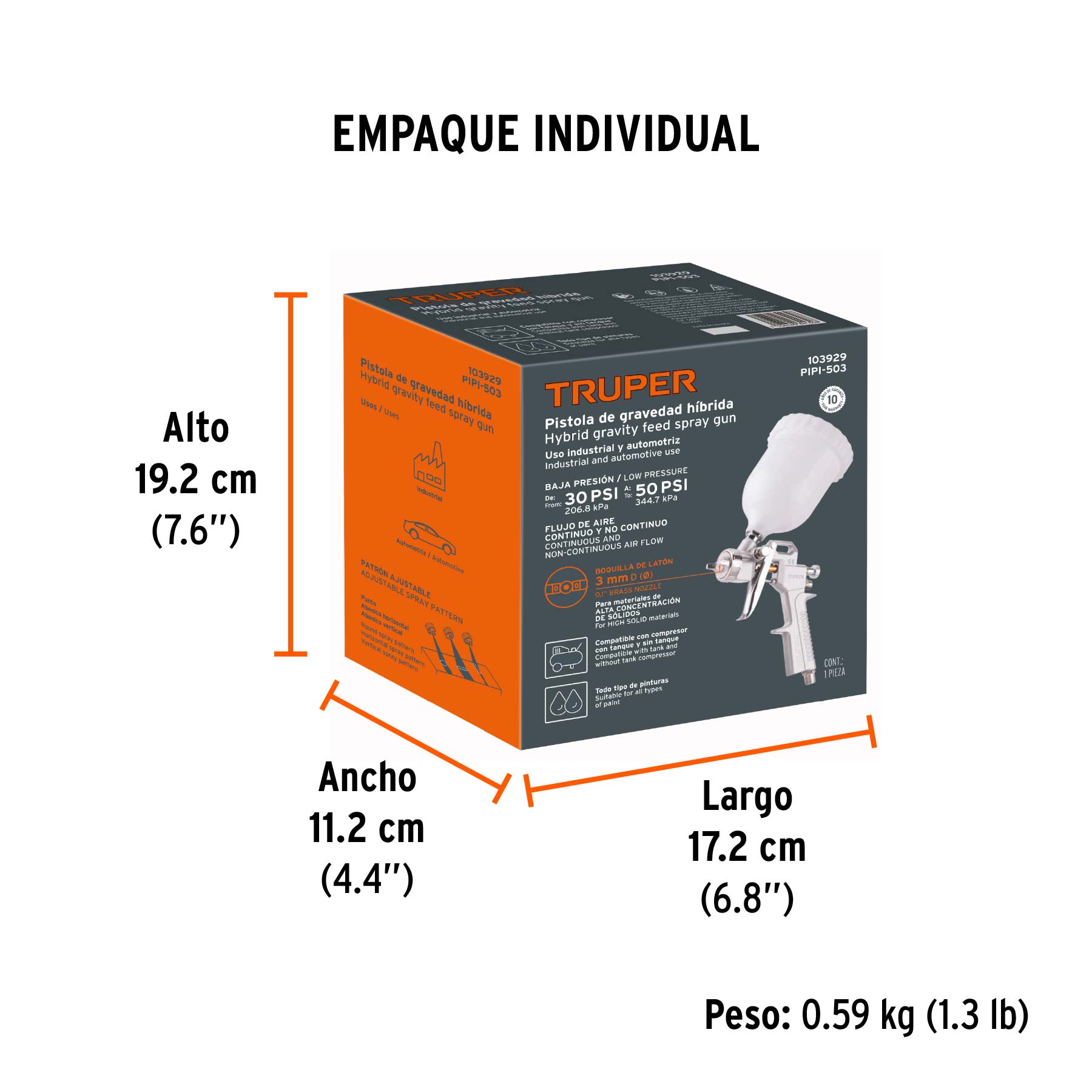Pistola p/pintar Híbrida vaso plástico,3.0mm, TRUPER