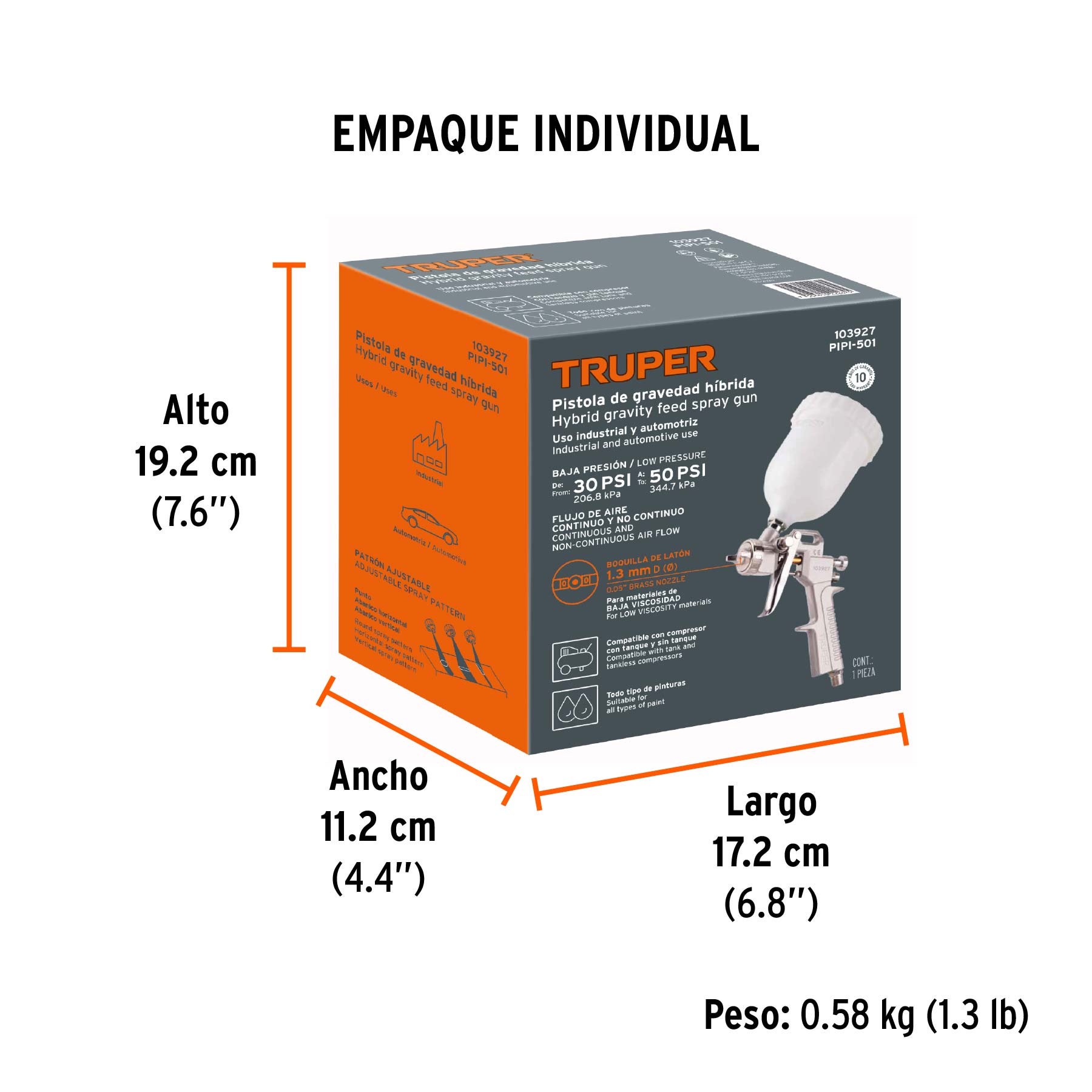Pistola p/pintar Híbrida vaso plástico,1.3mm, TRUPER