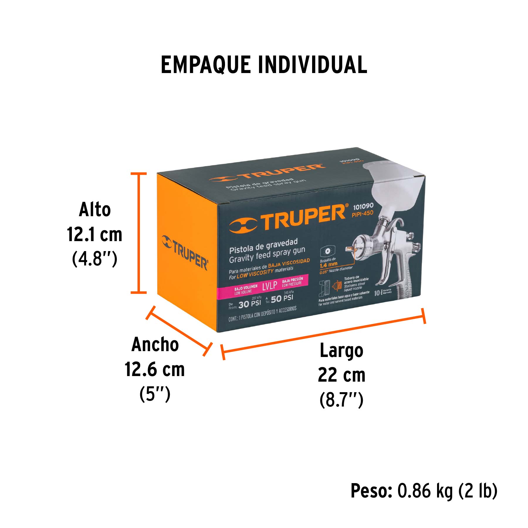 Pistola para pintar LVLP vaso plástico, 1.4 mm, TRUPER