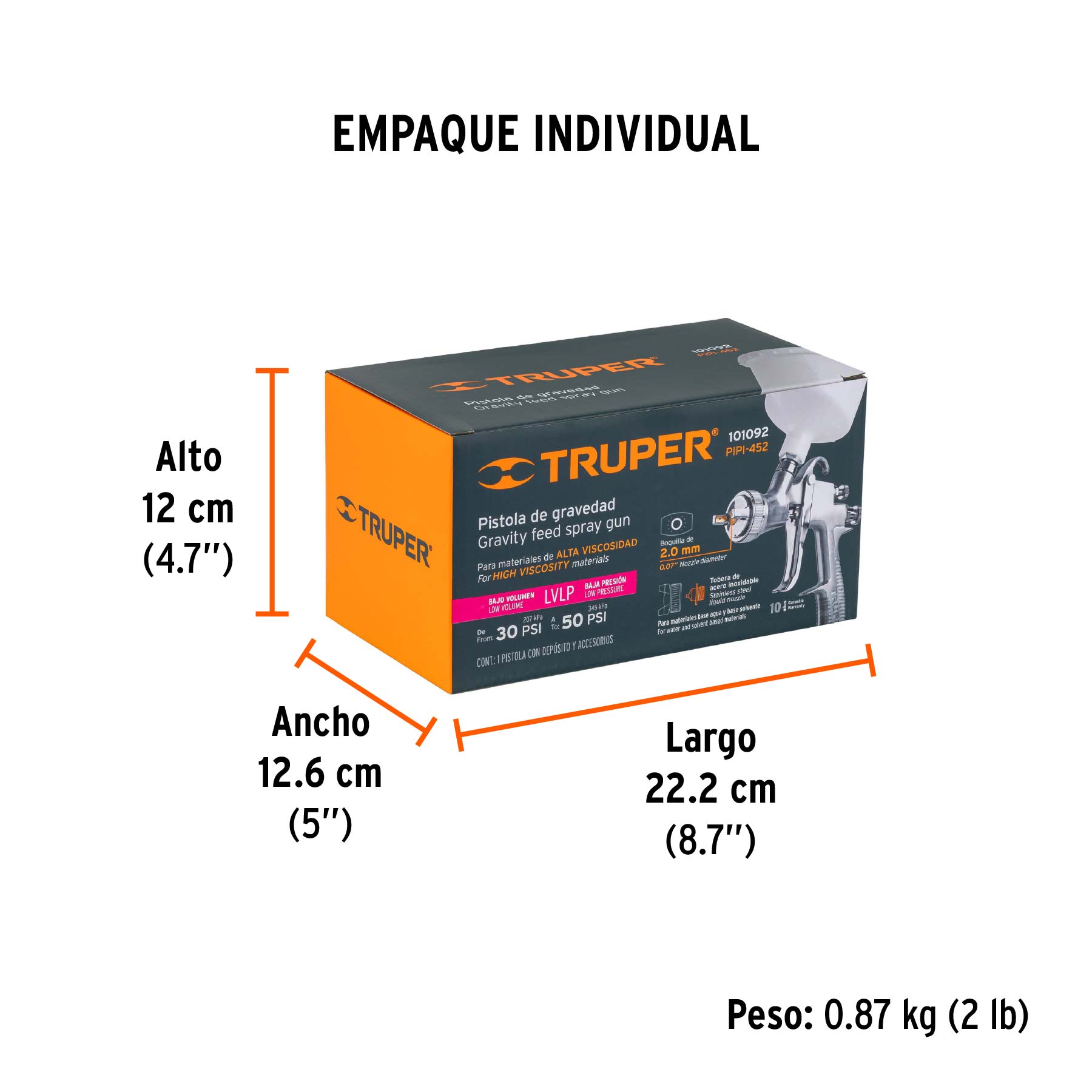 Pistola para pintar LVLP vaso plástico, 2.0 mm, TRUPER