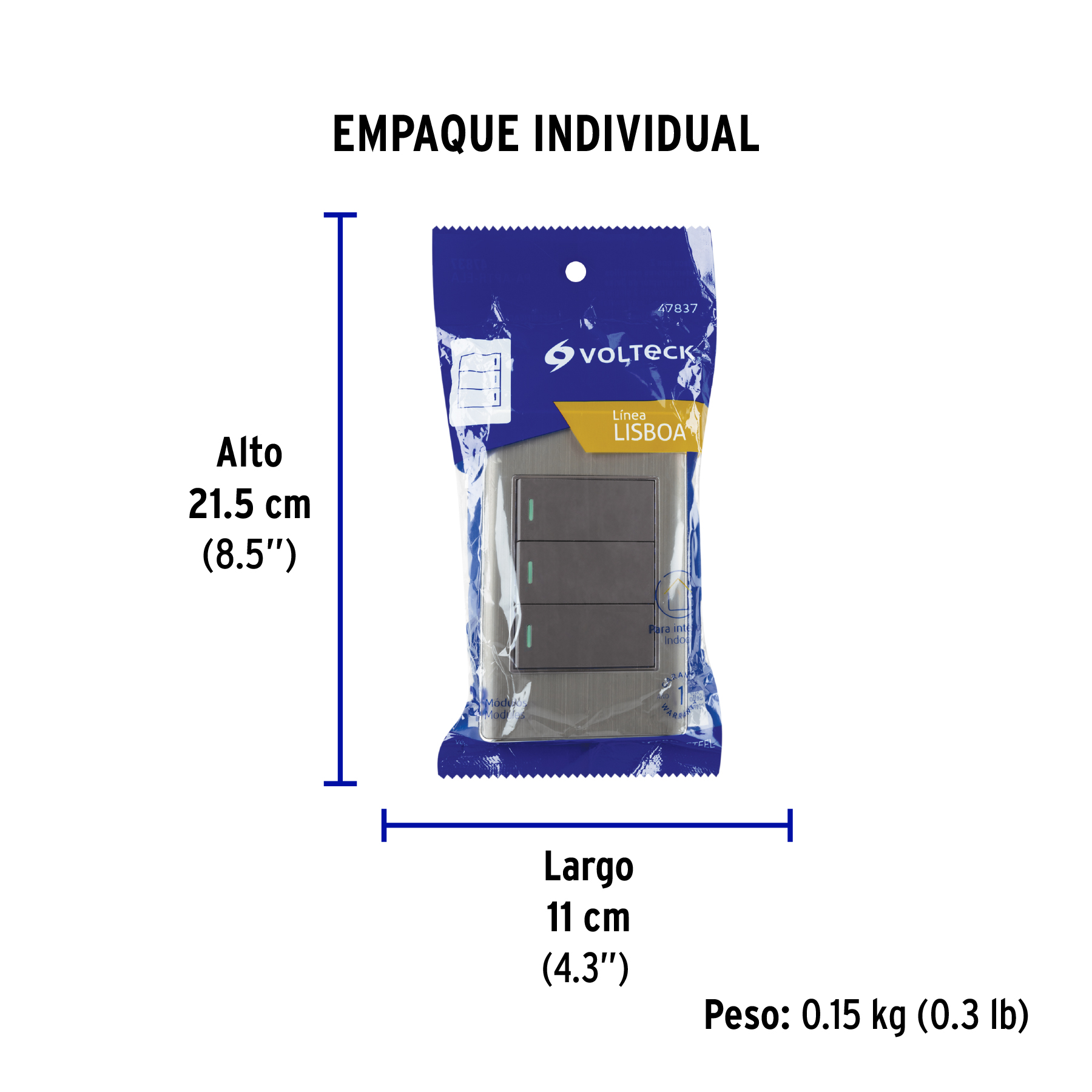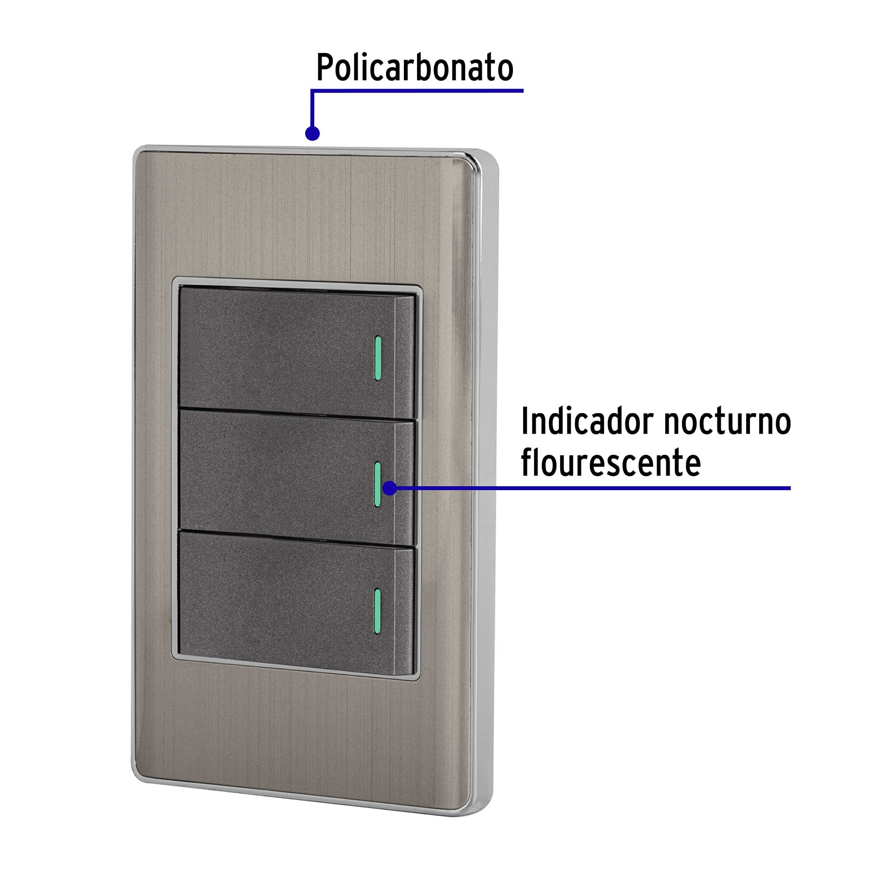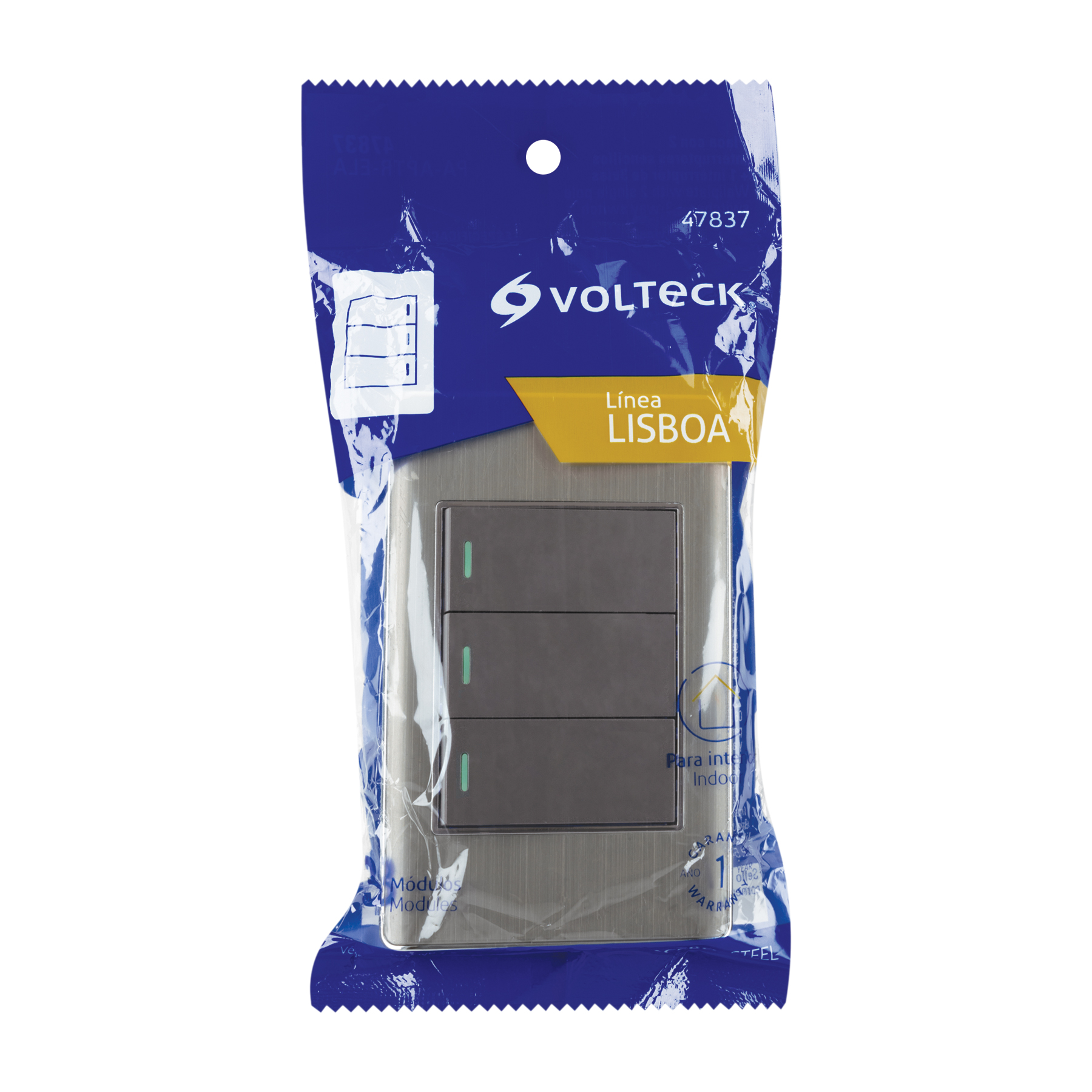 Placa armada acero 2 interruptores 1 de 3 vías 1 mód, Lisboa