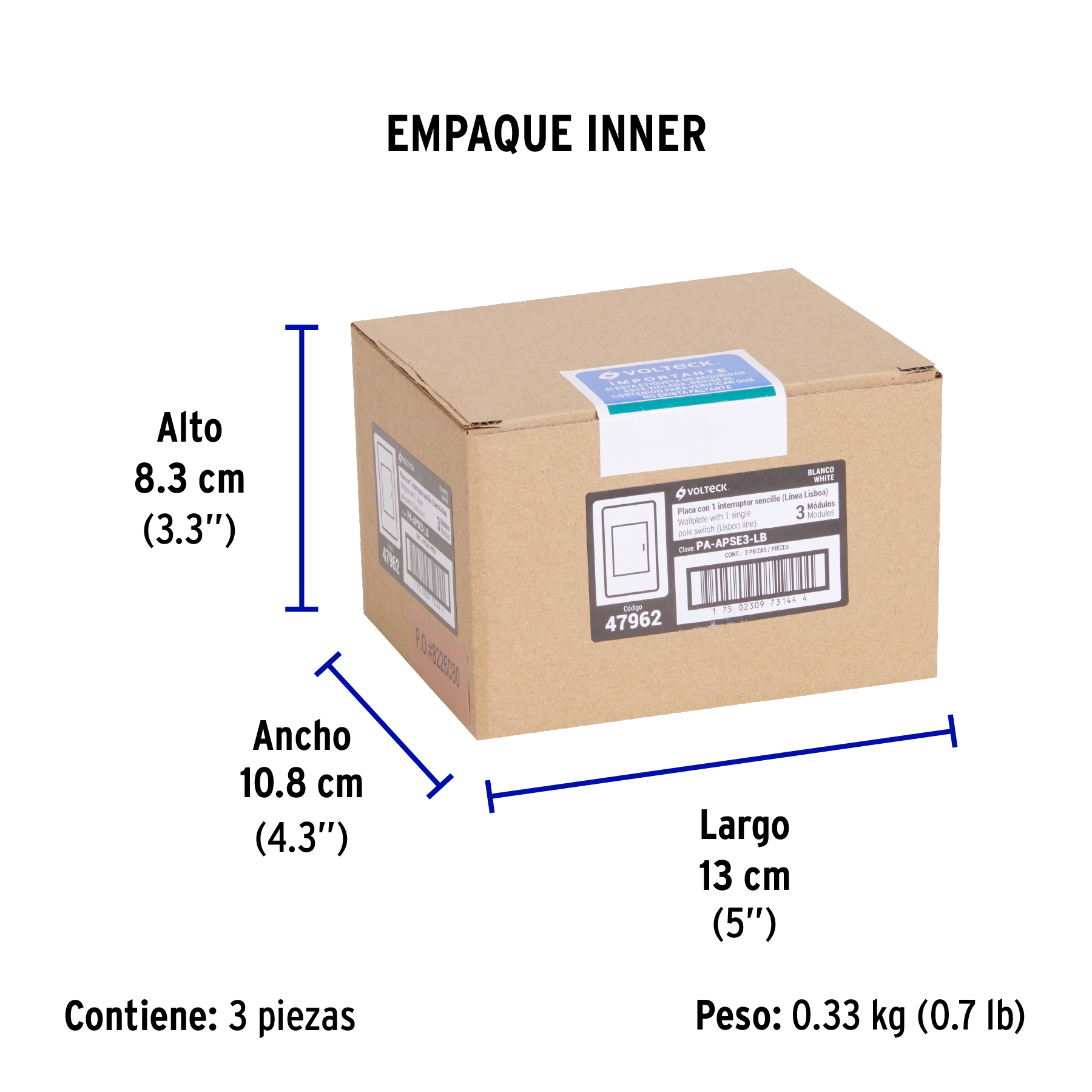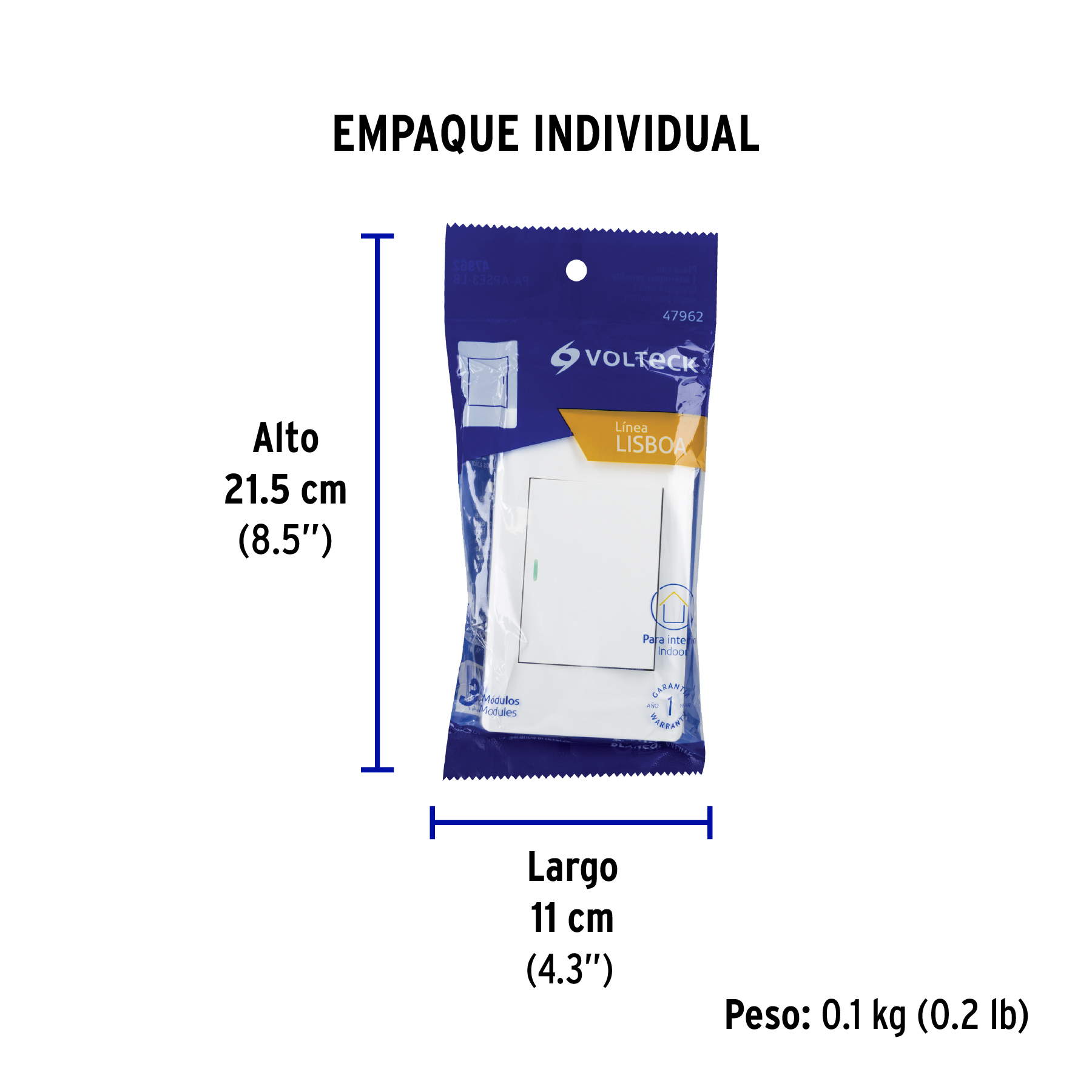Placa armada blanca 1 interruptor 3 módulos, Lisboa, VOLTECK