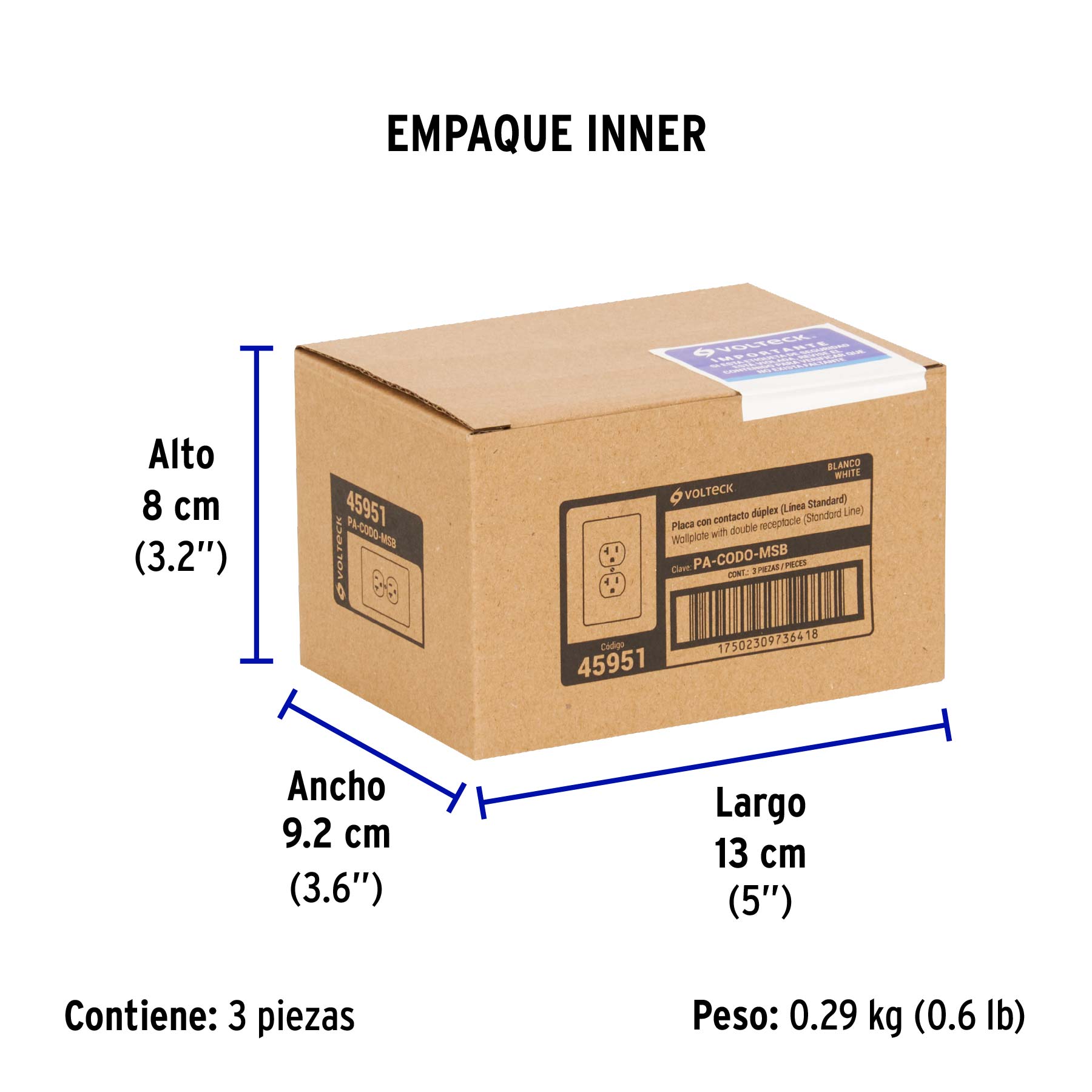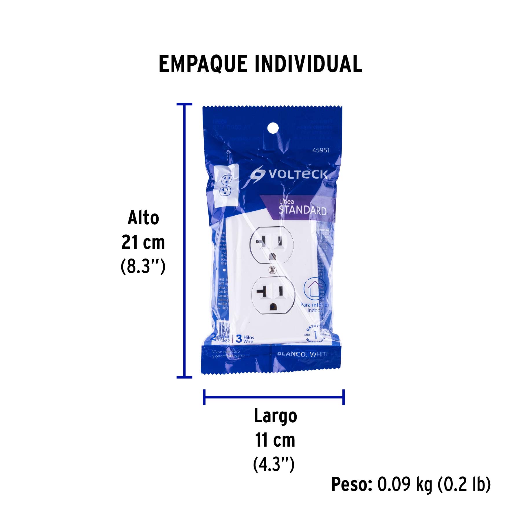 Placa armada contacto dúplex,2 polos, línea Standard, blanco