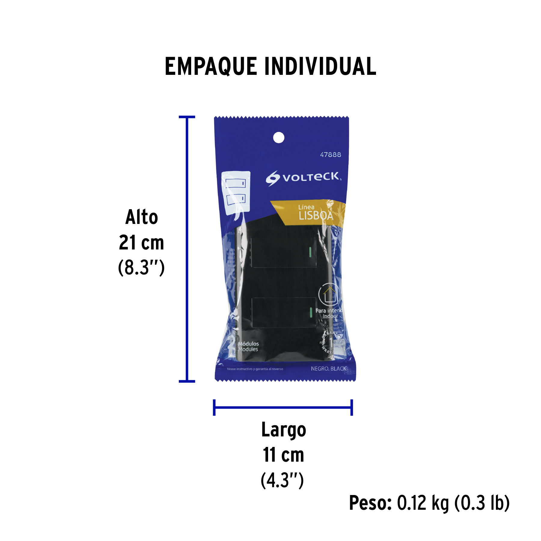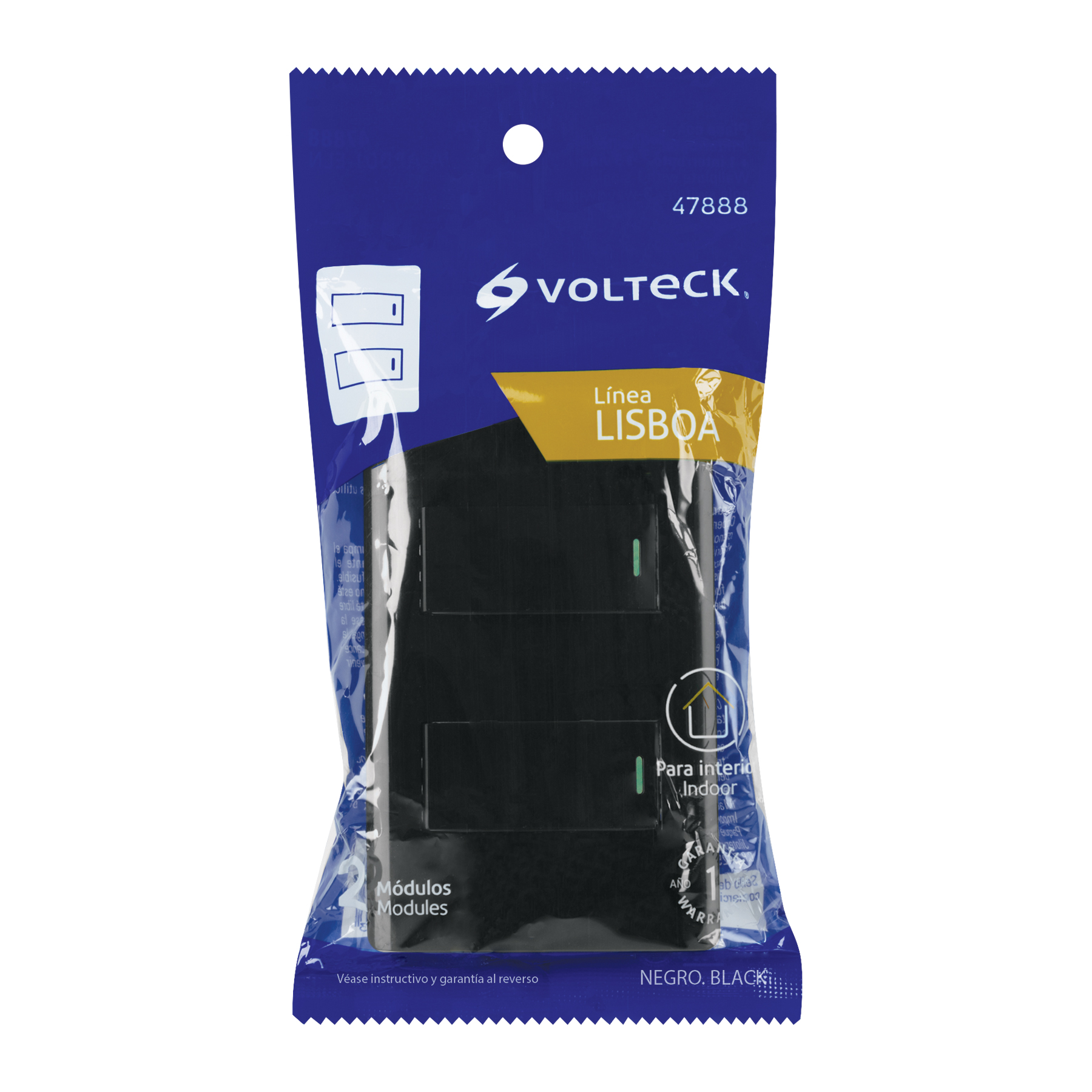 Placa armada negra 1 interruptor y 1 de 3 vías 1 mód, Lisboa