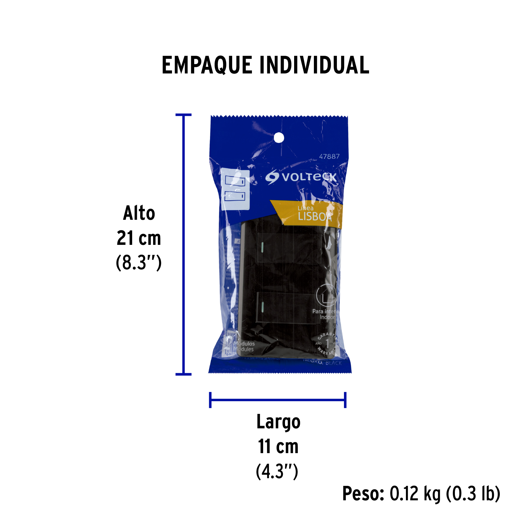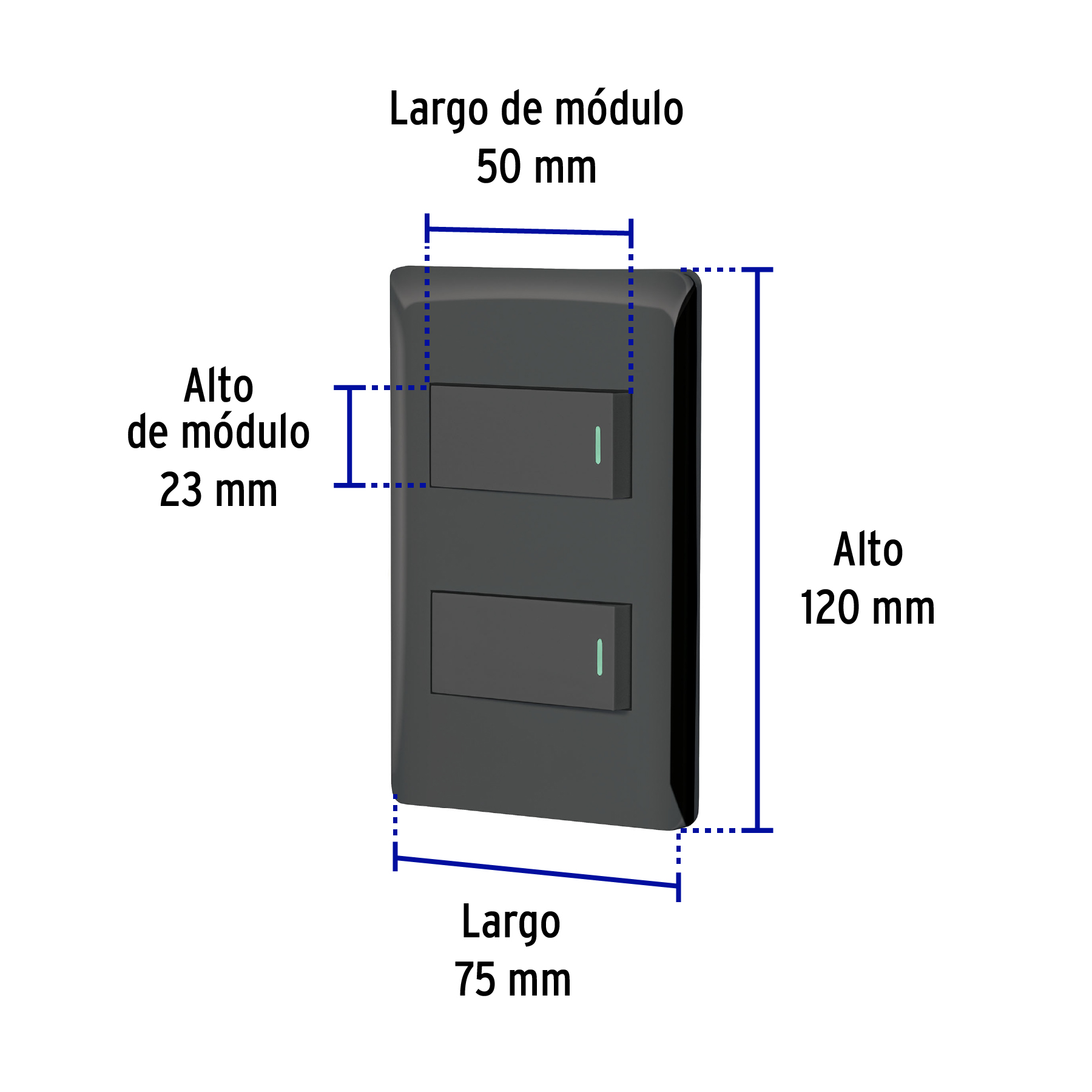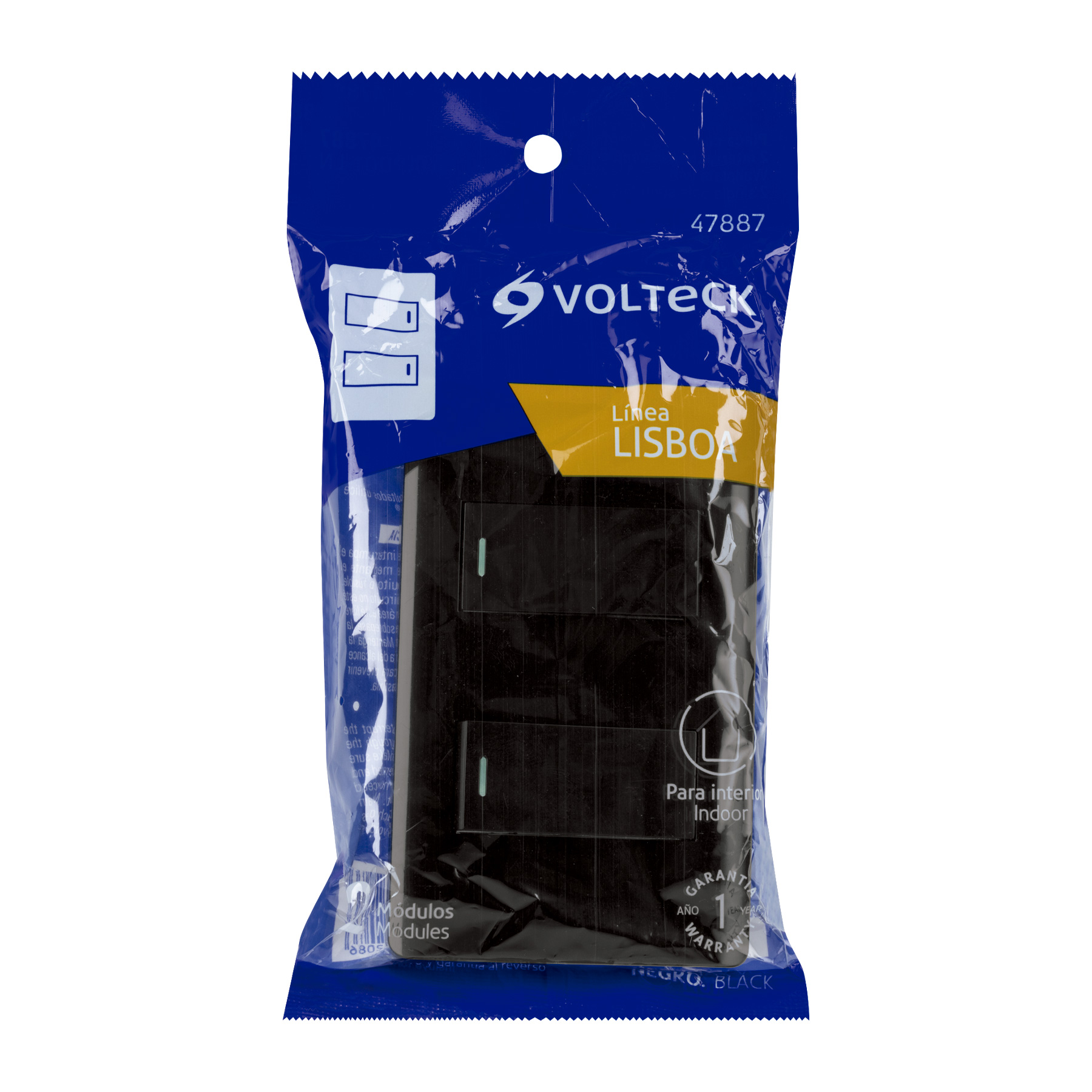 Placa armada negra con 2 interruptores 1 módulo, Lisboa
