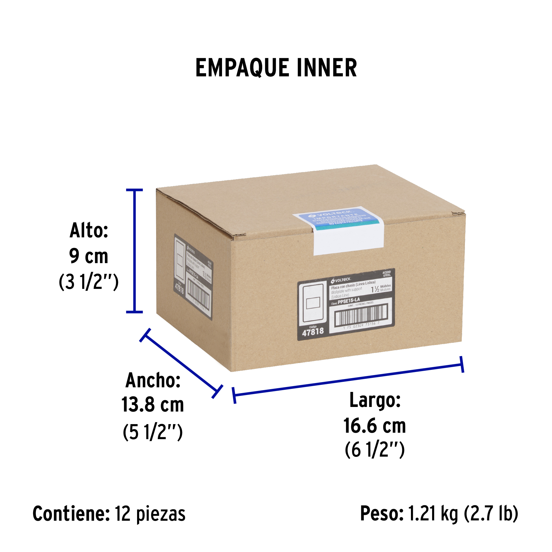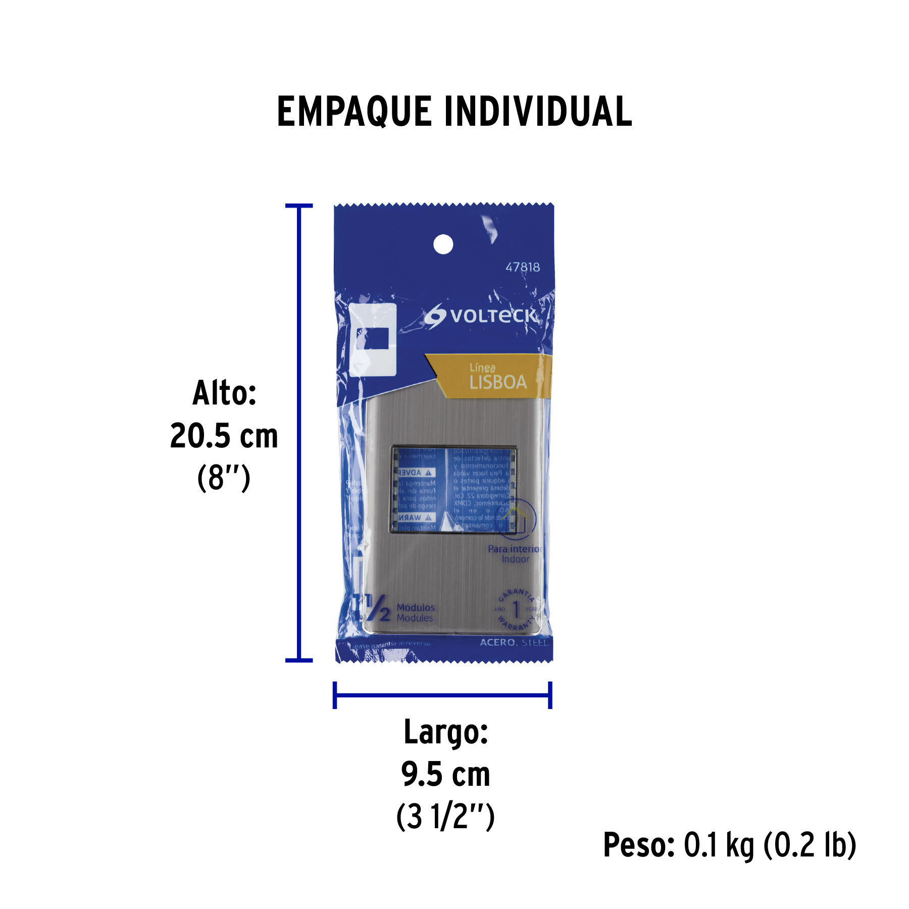 Placa de acero inox con 1 ventana 1.5 módulos, línea Lisboa