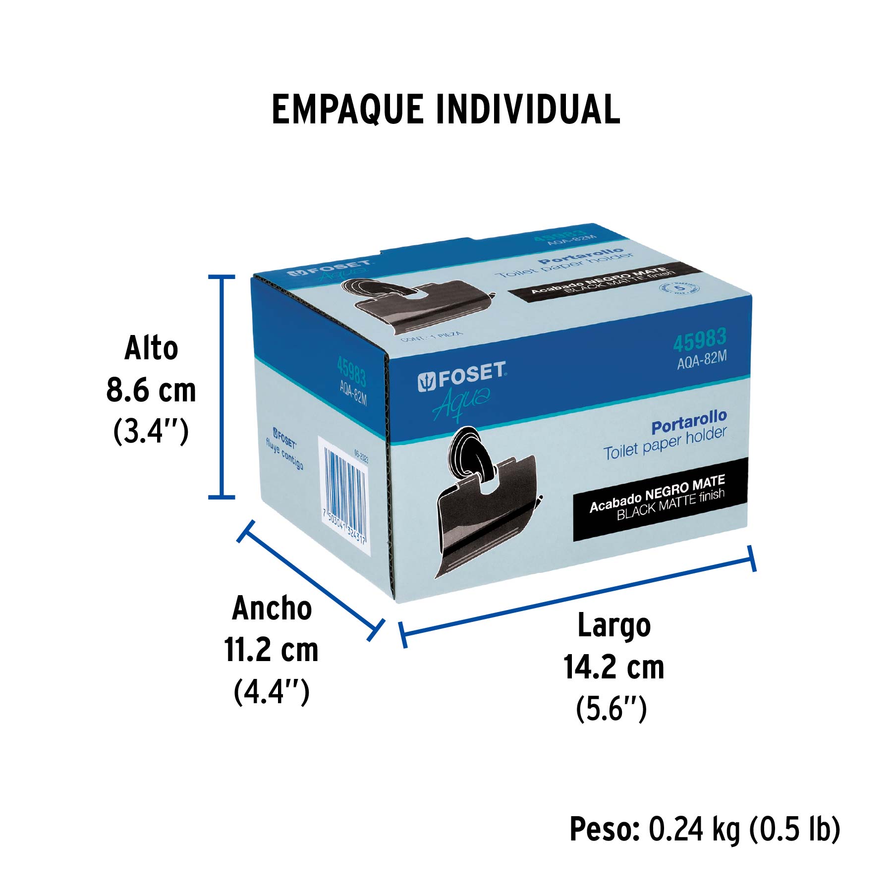 Portarrollo con cubierta, negro, FOSET AQUA