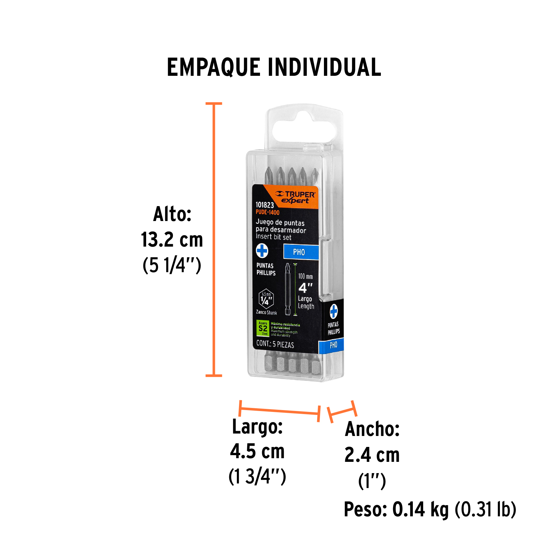Estuche con 5 puntas de cruz PH0 largo 4", Truper Expert