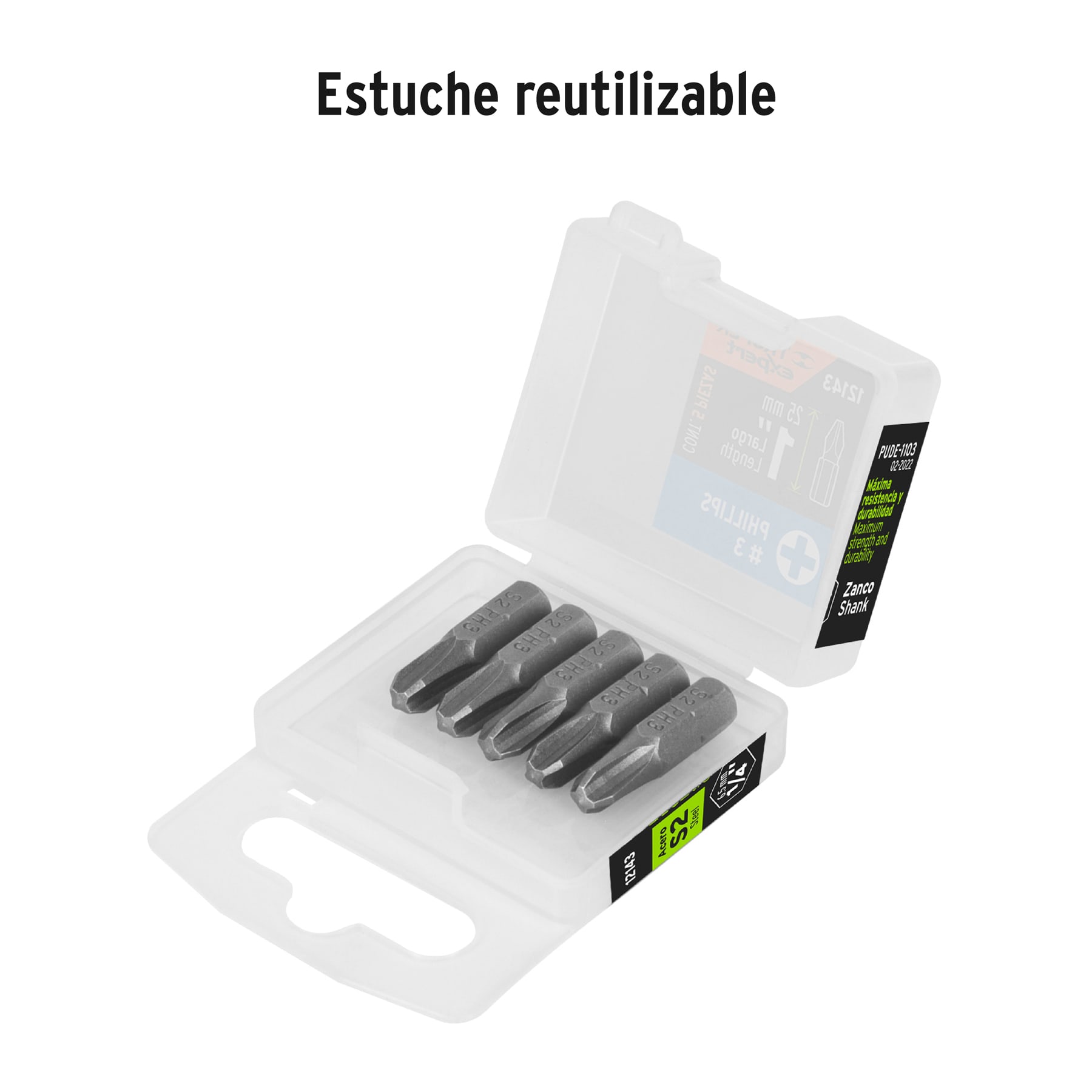 Estuche con 5 puntas de cruz PH3 largo 1", TRUPER EXPERT