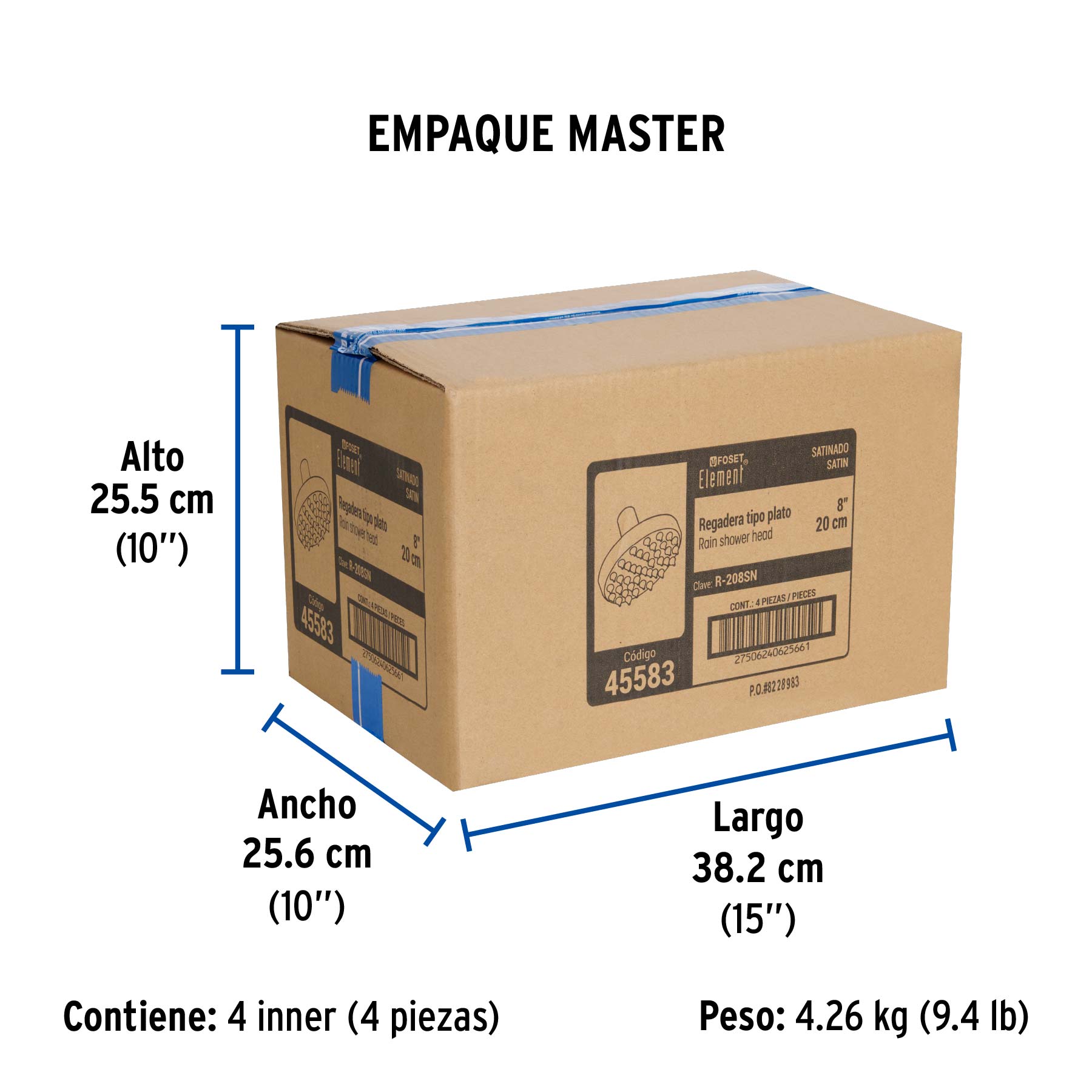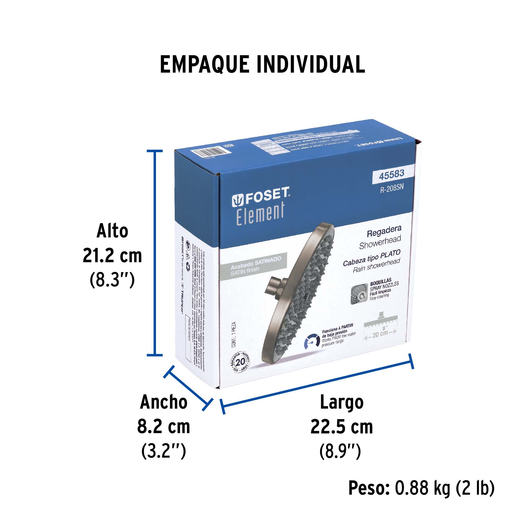 Diámetro de la cabeza | 8" (20 cm) |