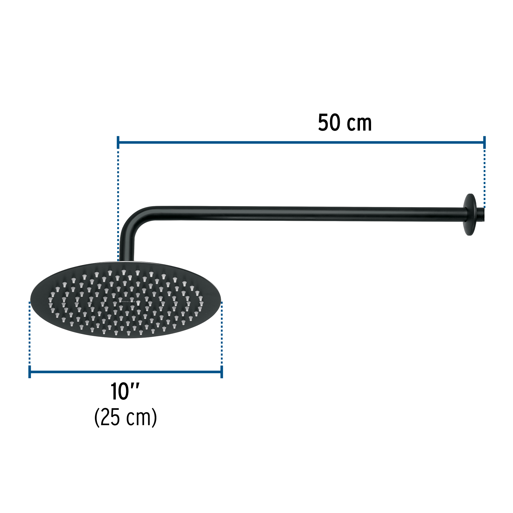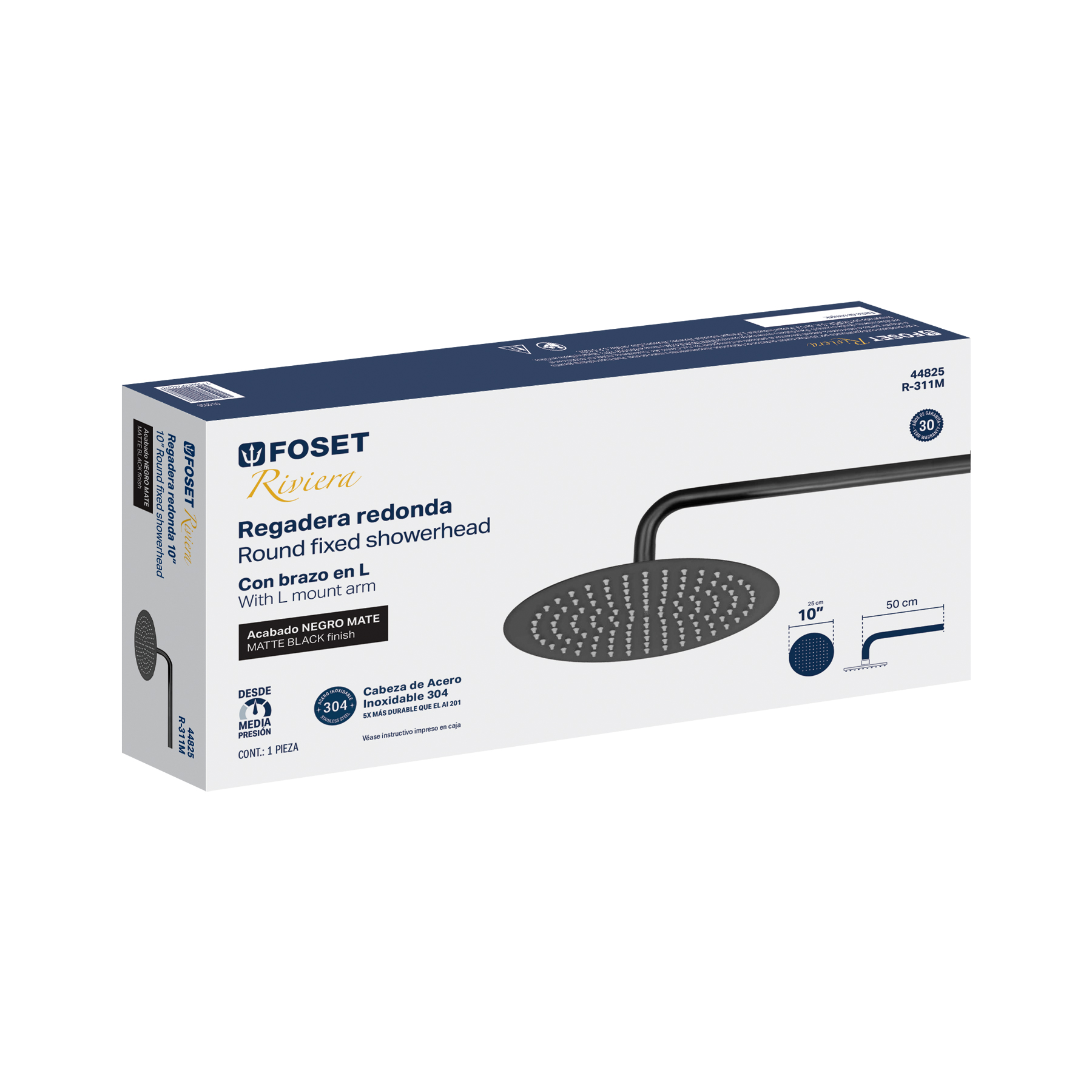 Regadera plato redondo 10" con brazo, negro, FOSET RIVIERA