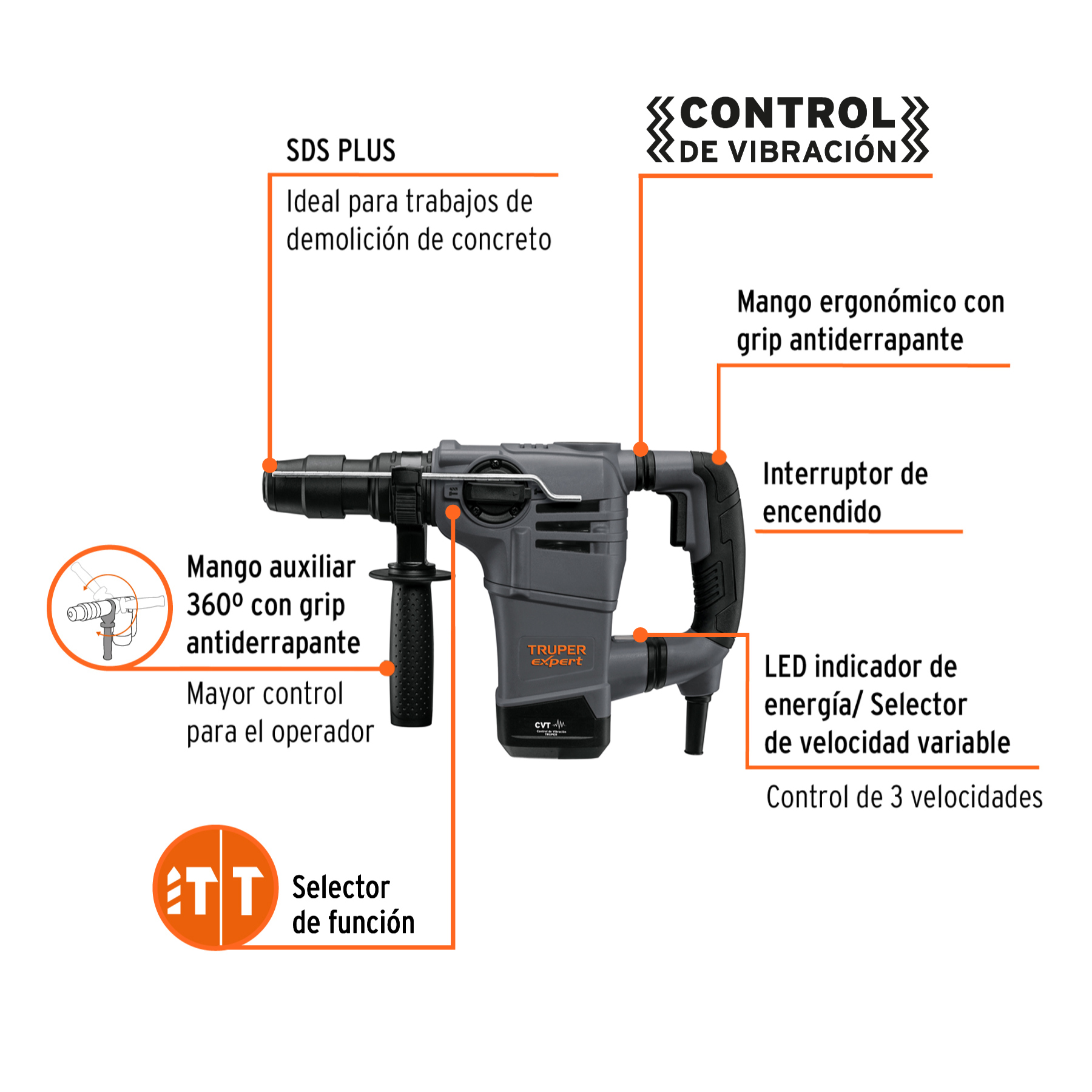 2 Funciones: Cincelado y Rotomartillo