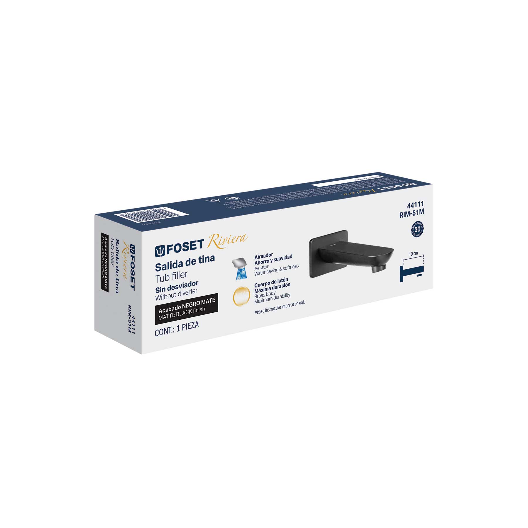 Salida de tina sin desviador, negro, FOSET RIVIERA