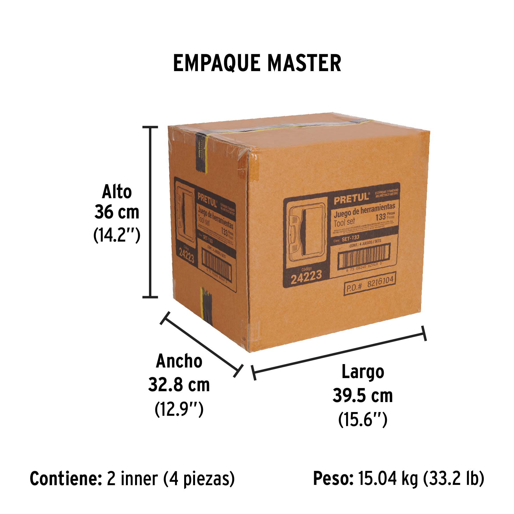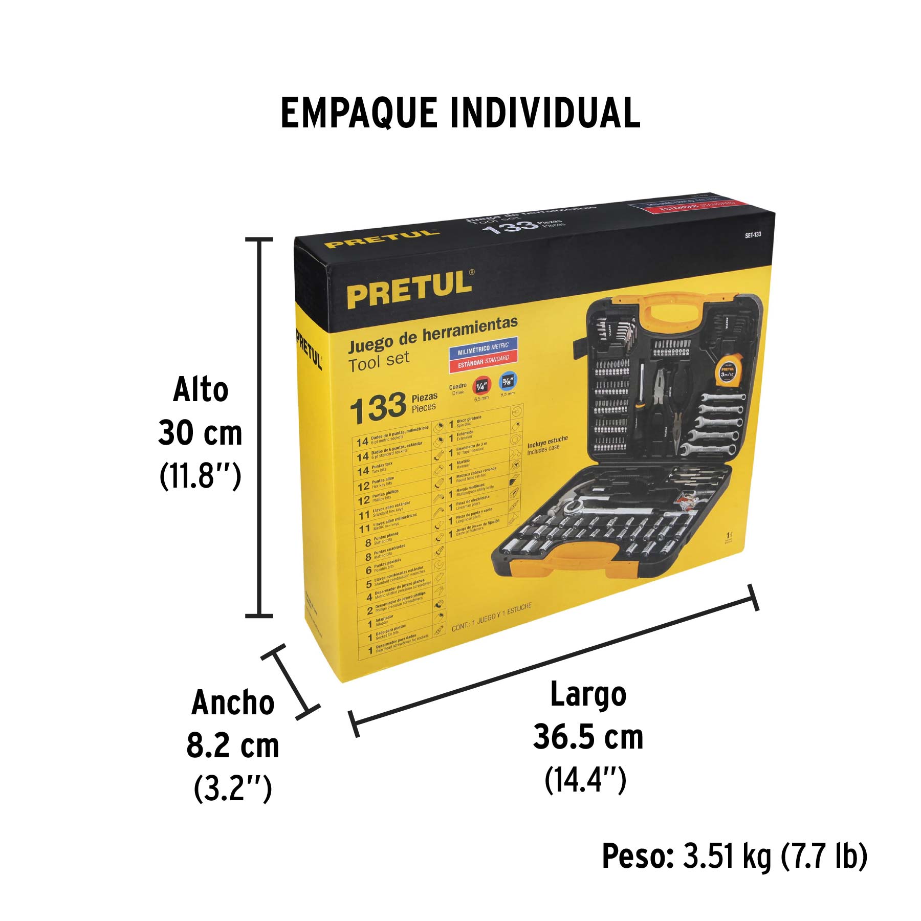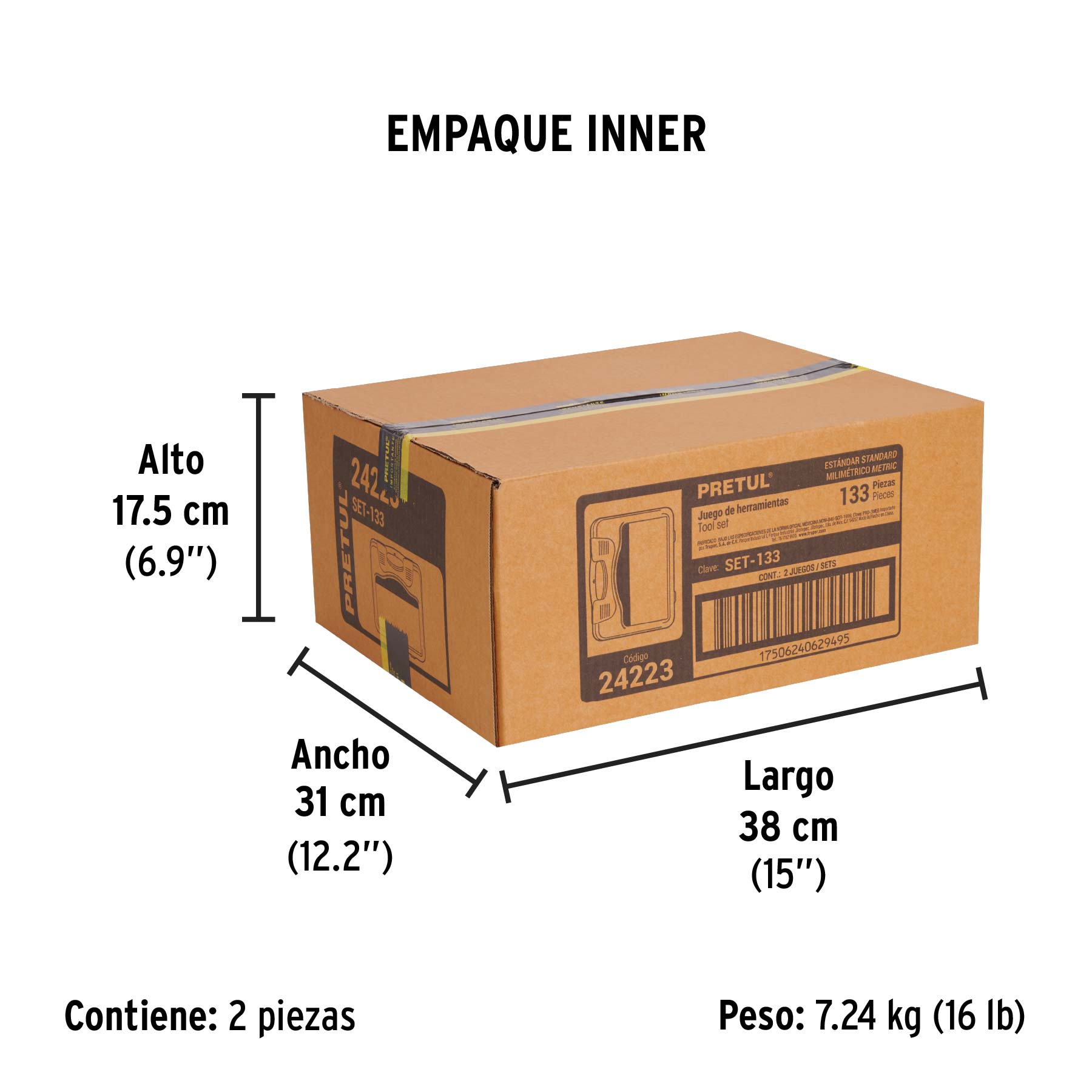 28 Dados: (12) 4 a 13 mm, (2) 14 y 16 mm, (12) 5/32" a 1/2", (2) 9/16" y 5/8" |