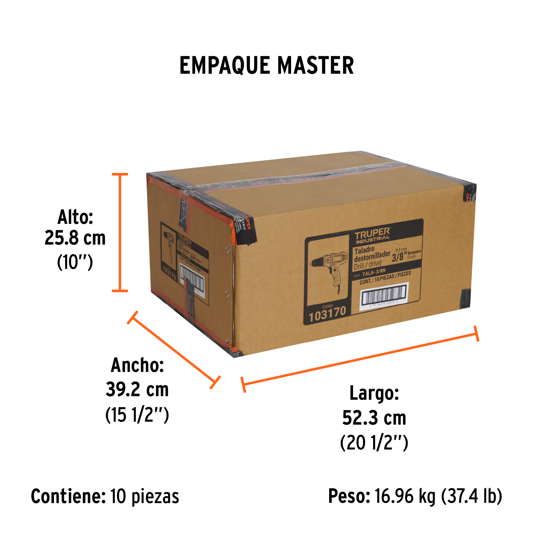 Ø Perforación máxima en metal: | 3/8" (10 mm) |