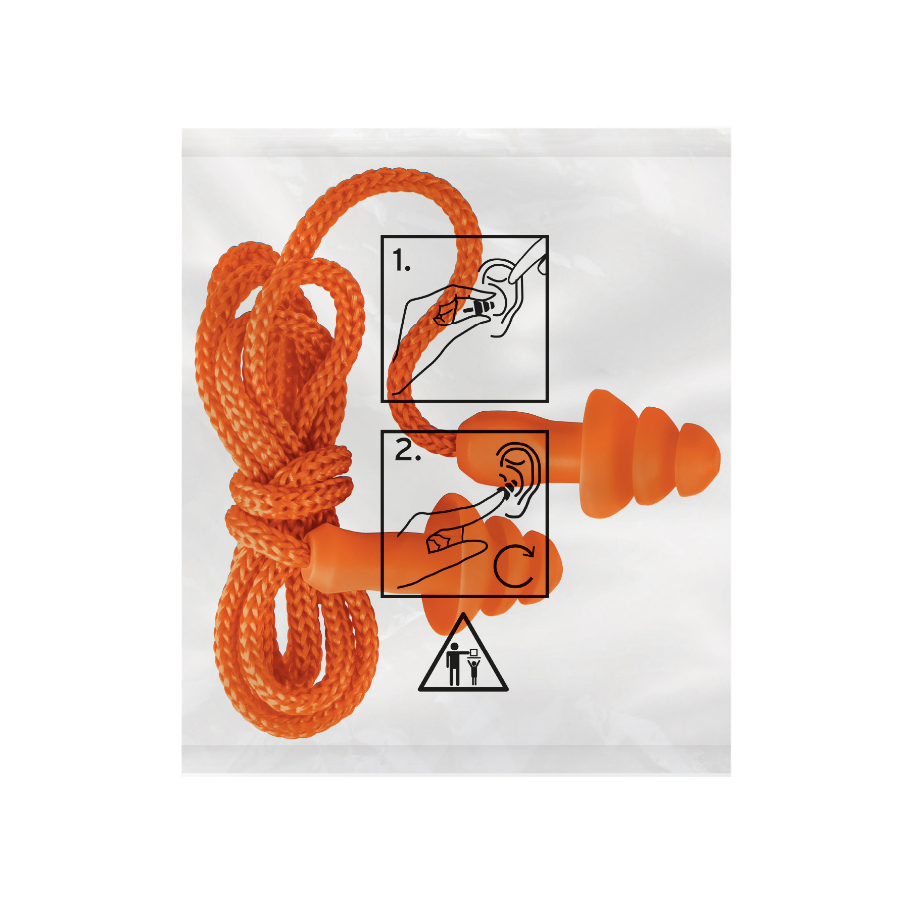 Tapón auditivo reutilizable triple barrera c/cordón, 50 pz