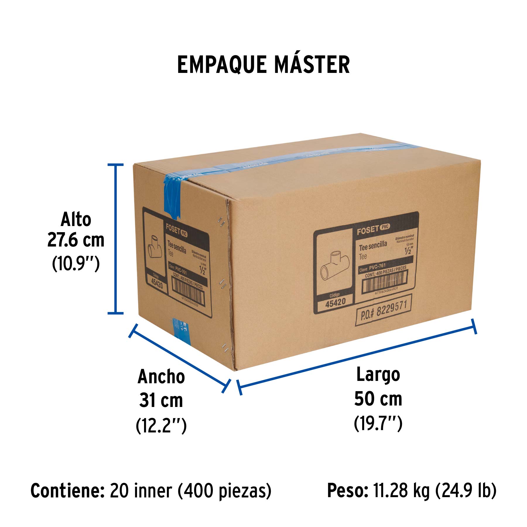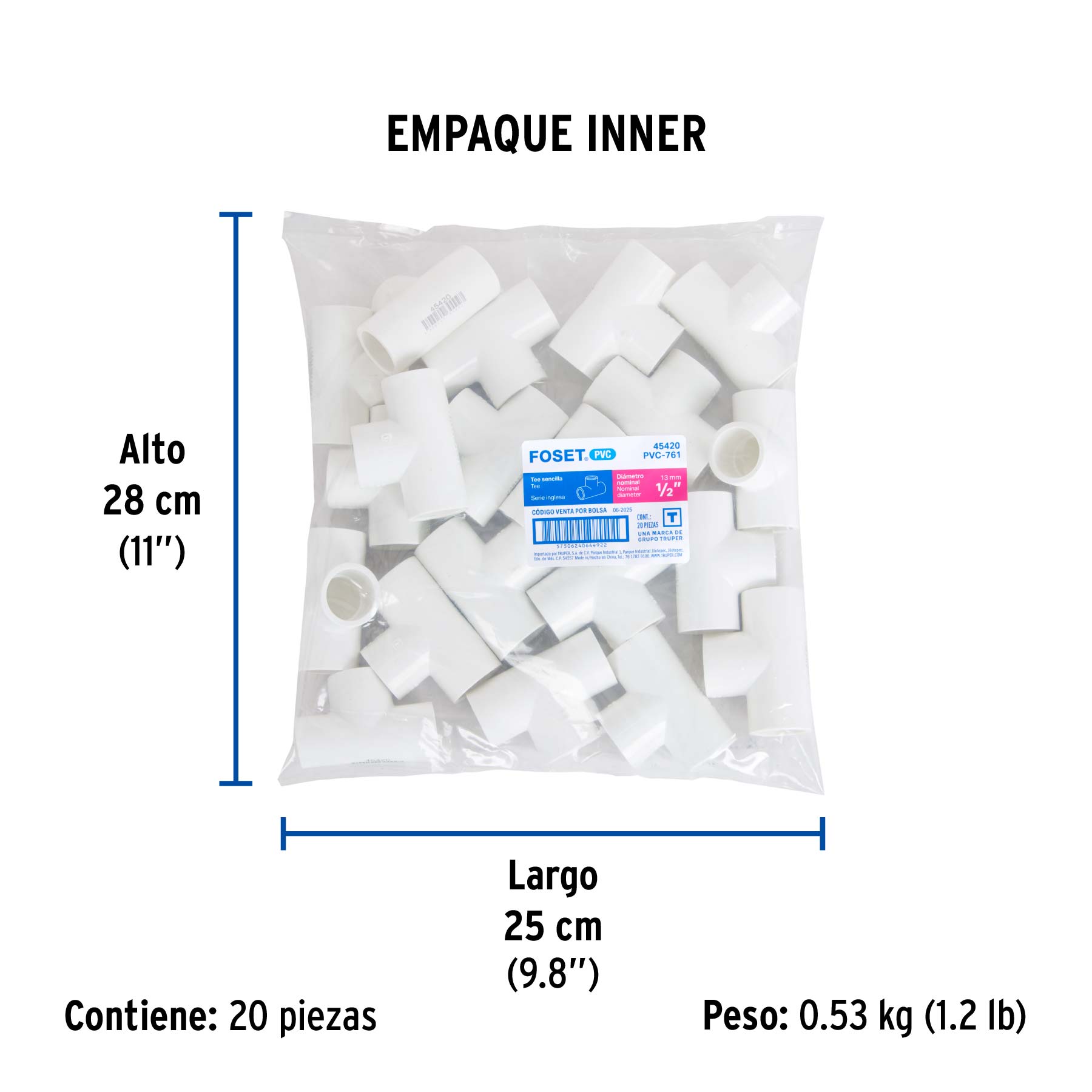 Tee sencilla de PVC 1/2", FOSET