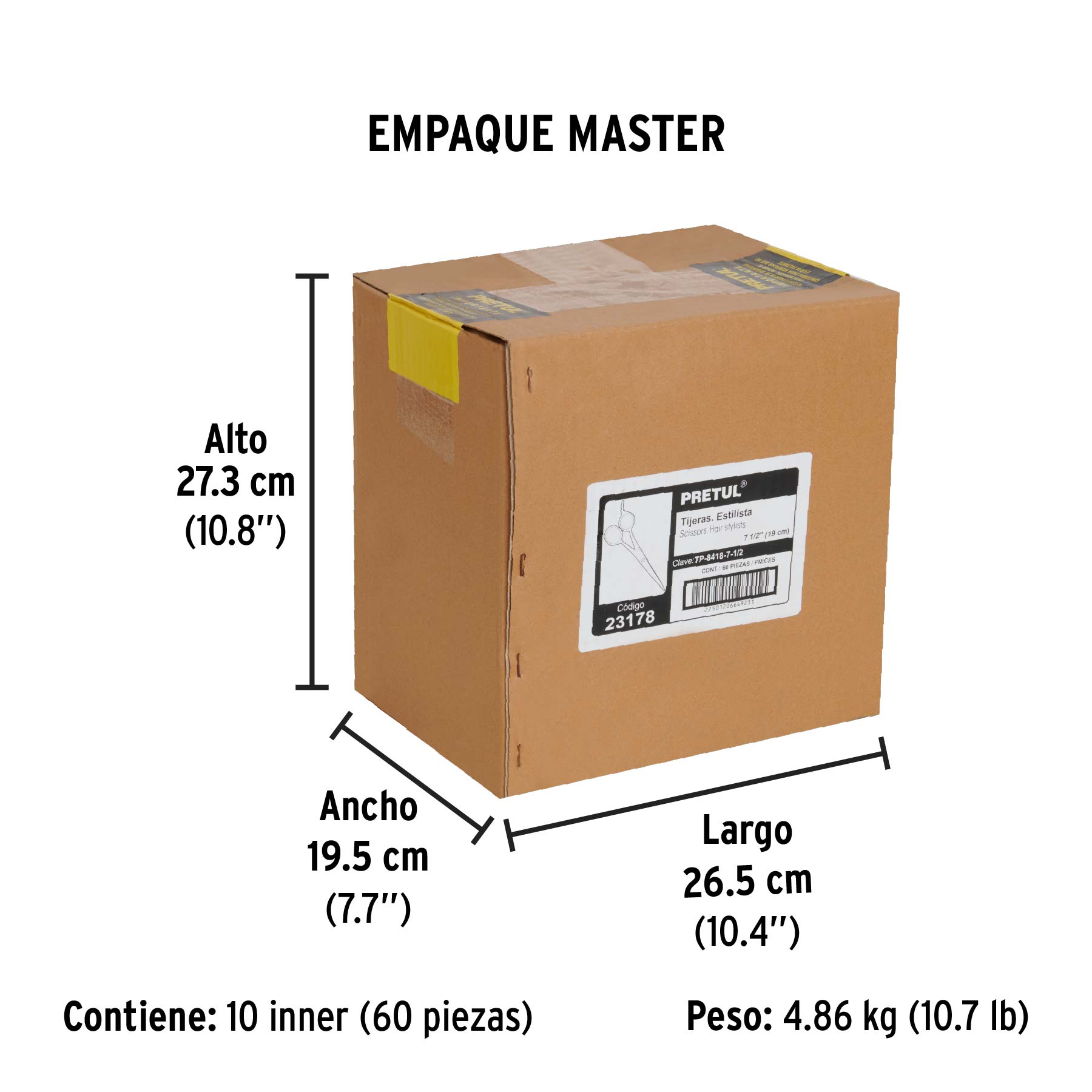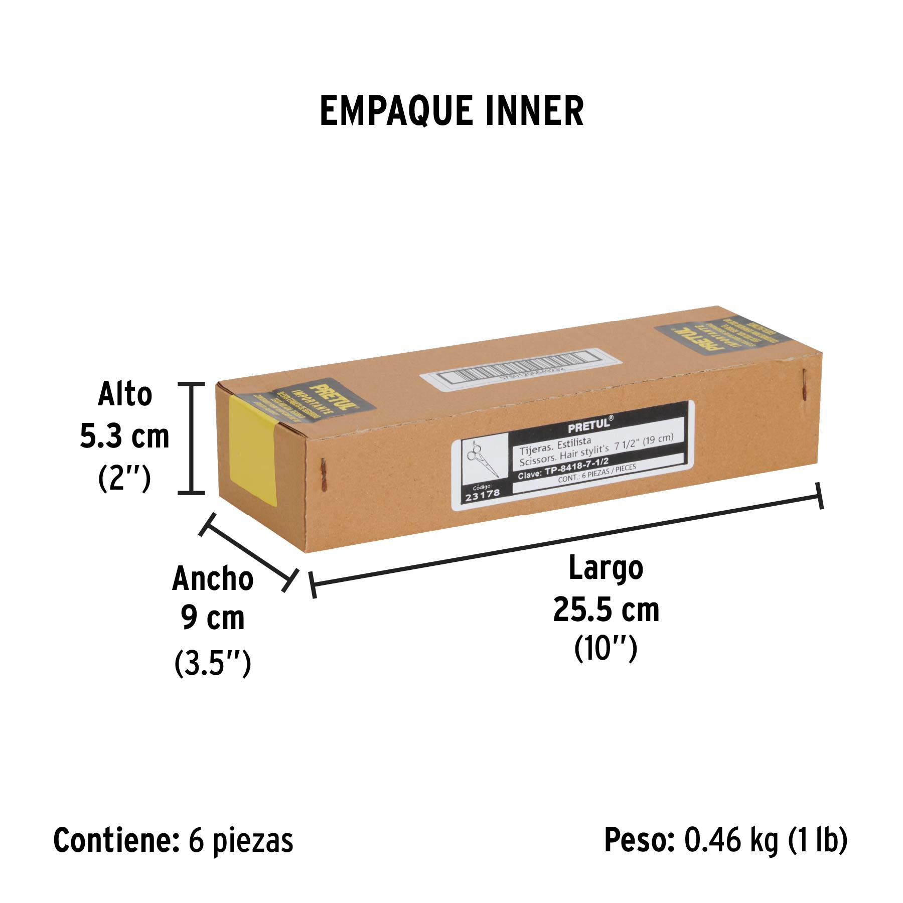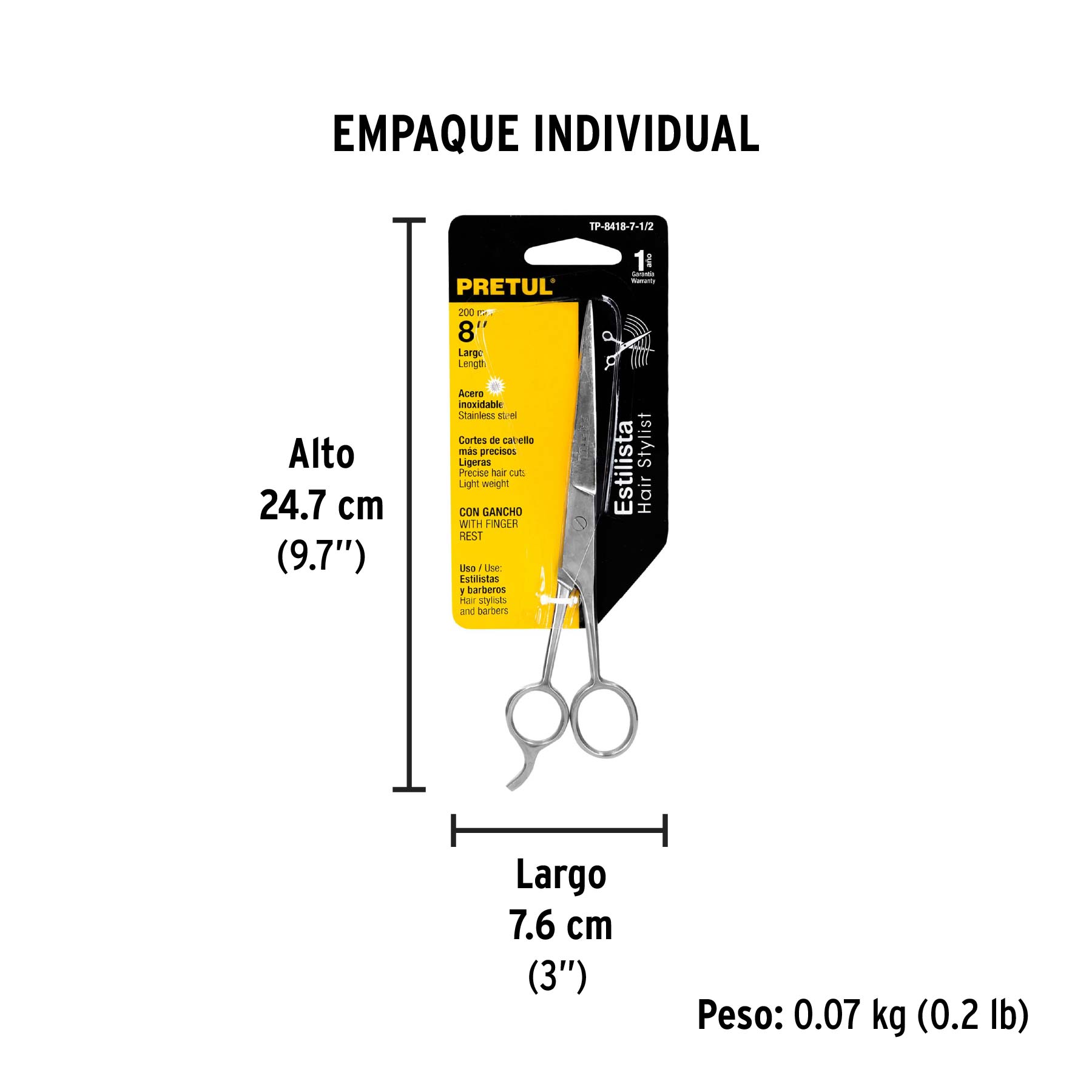 Tijera 7-1/2" estilista, con gancho, acero inoxidable,PRETUL