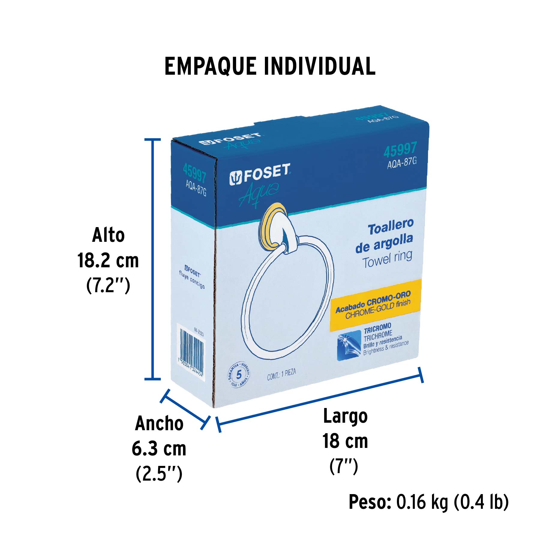 Toallero de argolla, cromo-oro, FOSET AQUA
