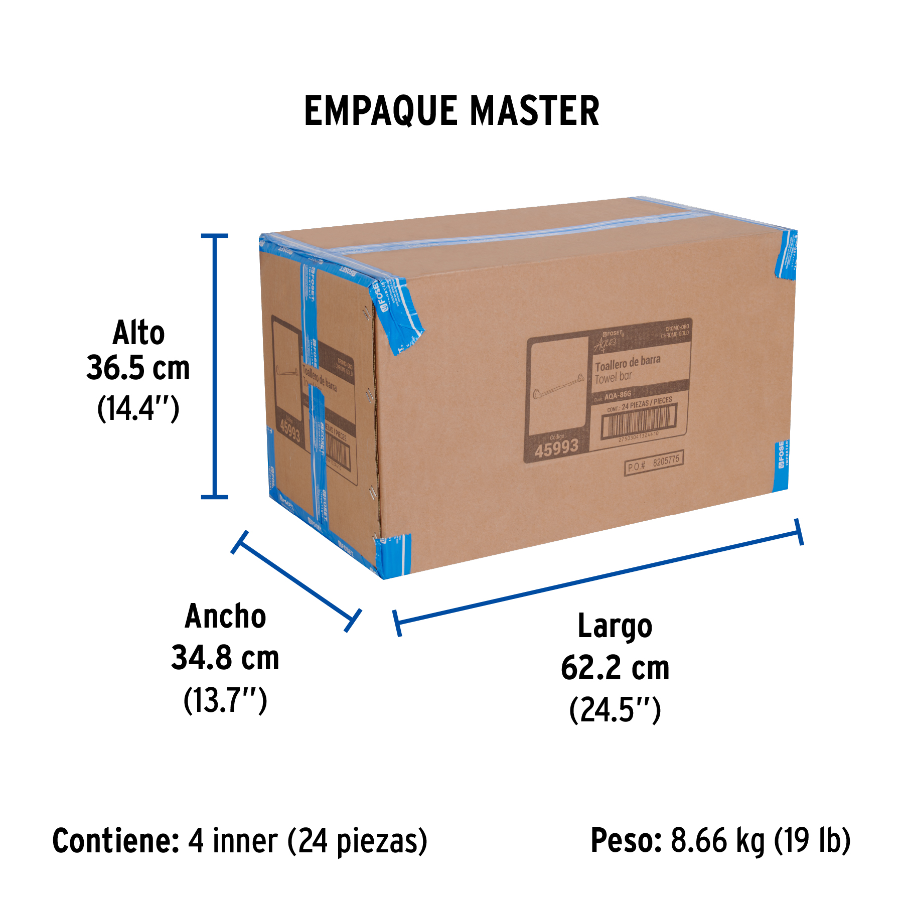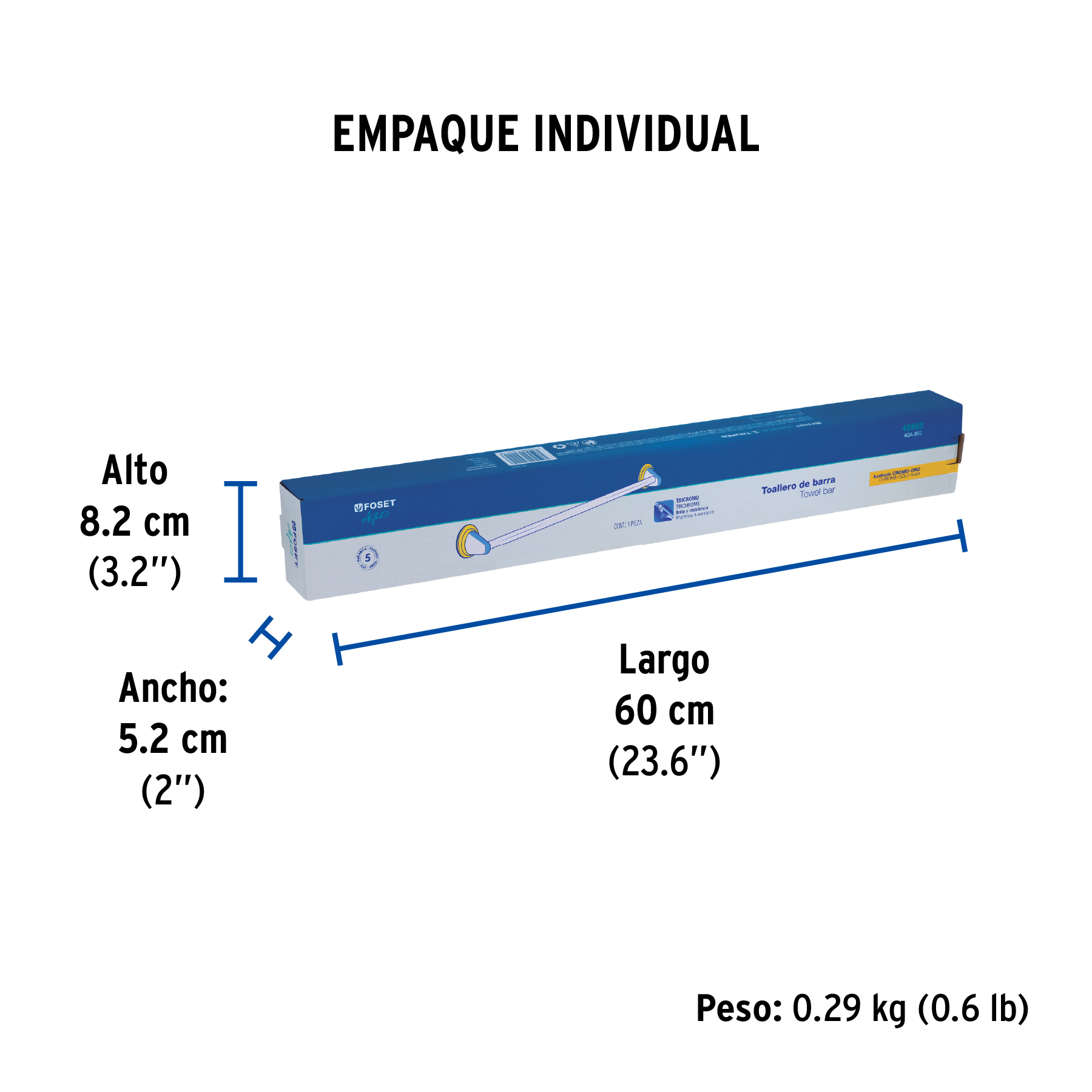 Toallero de barra largo, cromo-oro, FOSET AQUA