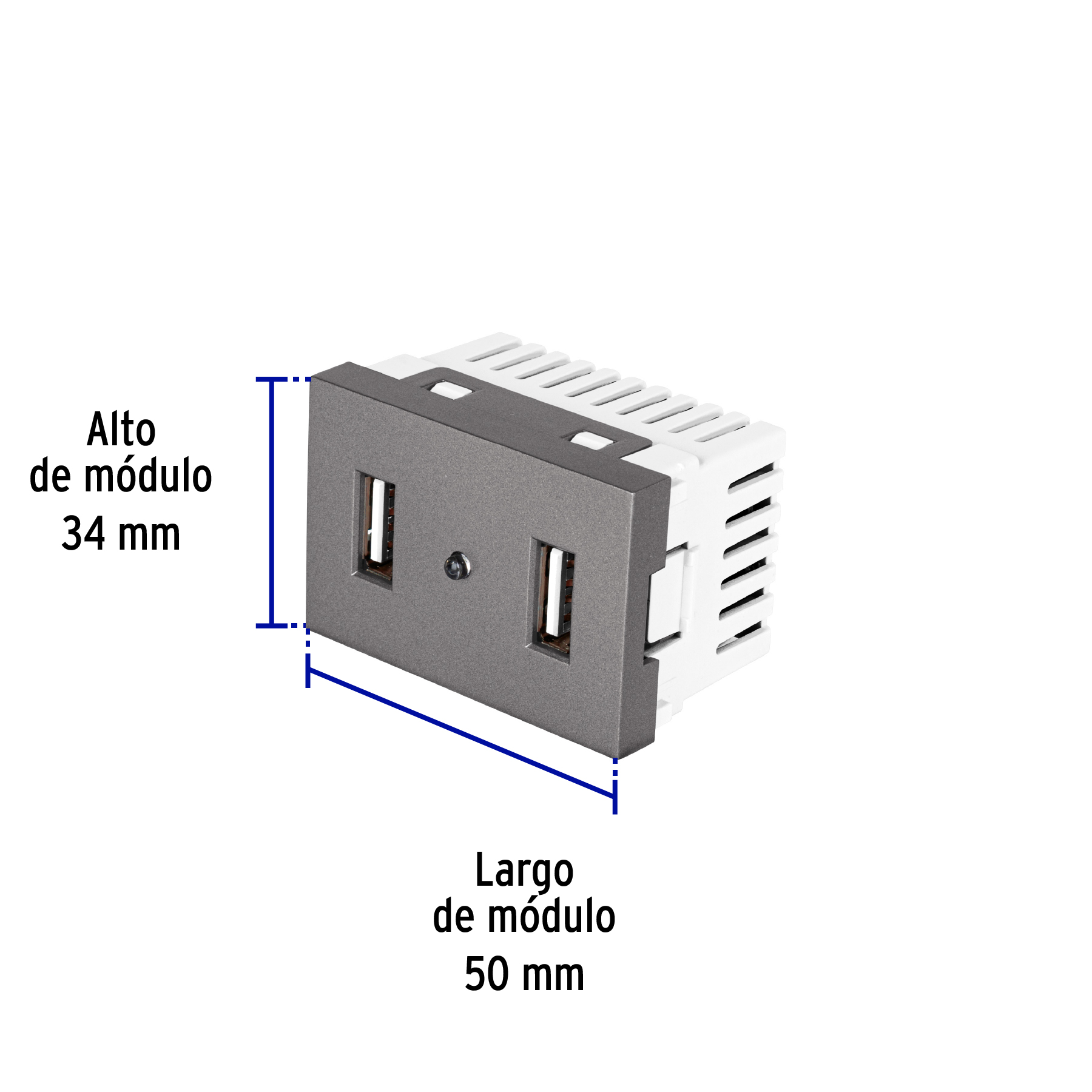 Toma 2 puertos USB acero inox de 1.5 módulos, línea Lisboa