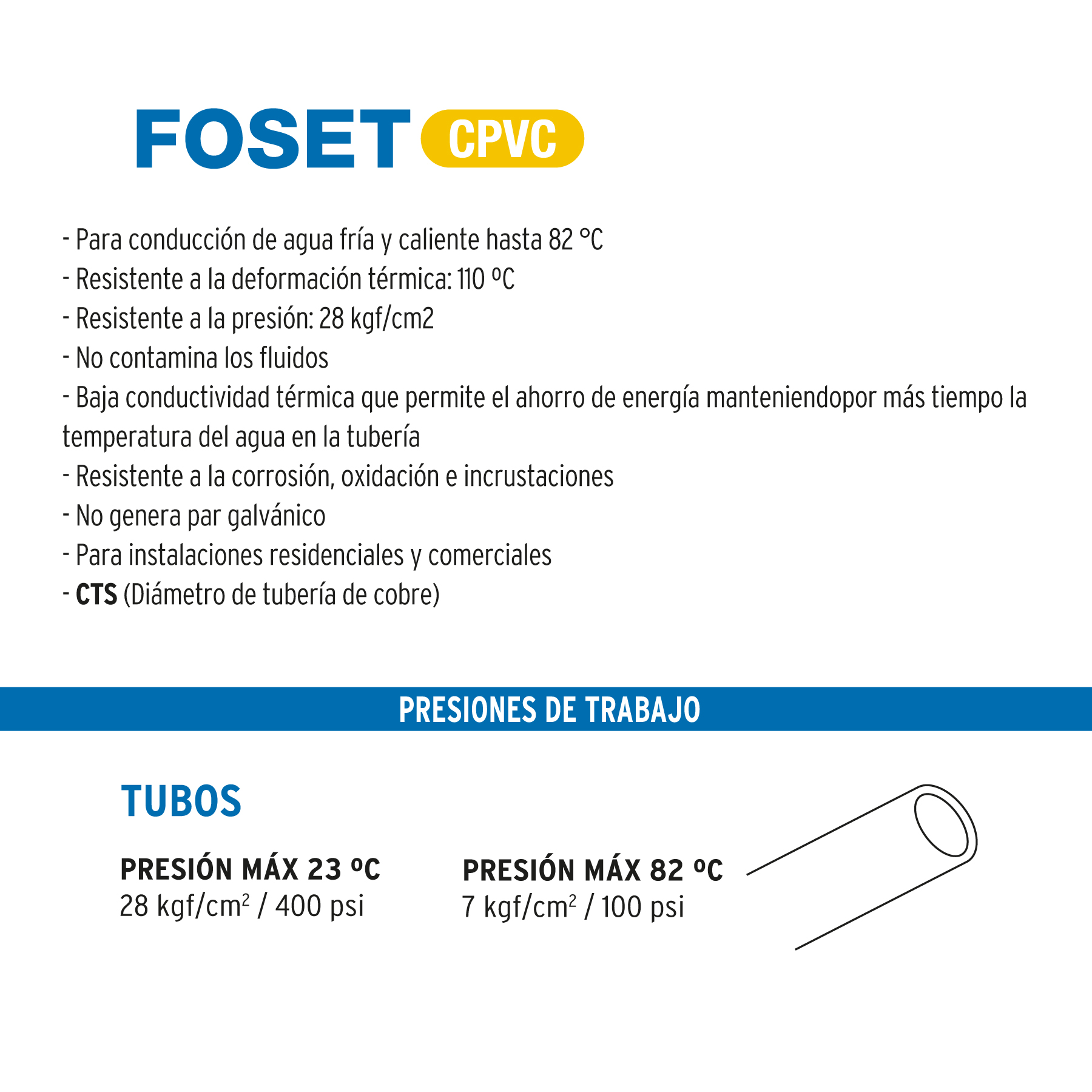 Tubo de 1/2" CPVC hidráulico RD 13.5, 3m, 0.3kg, FOSET