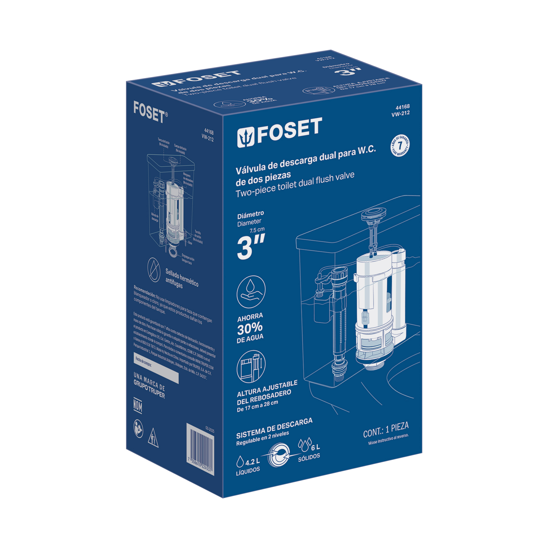 Válvula descarga dual 3" para WC de 2 piezas, sin botón dual