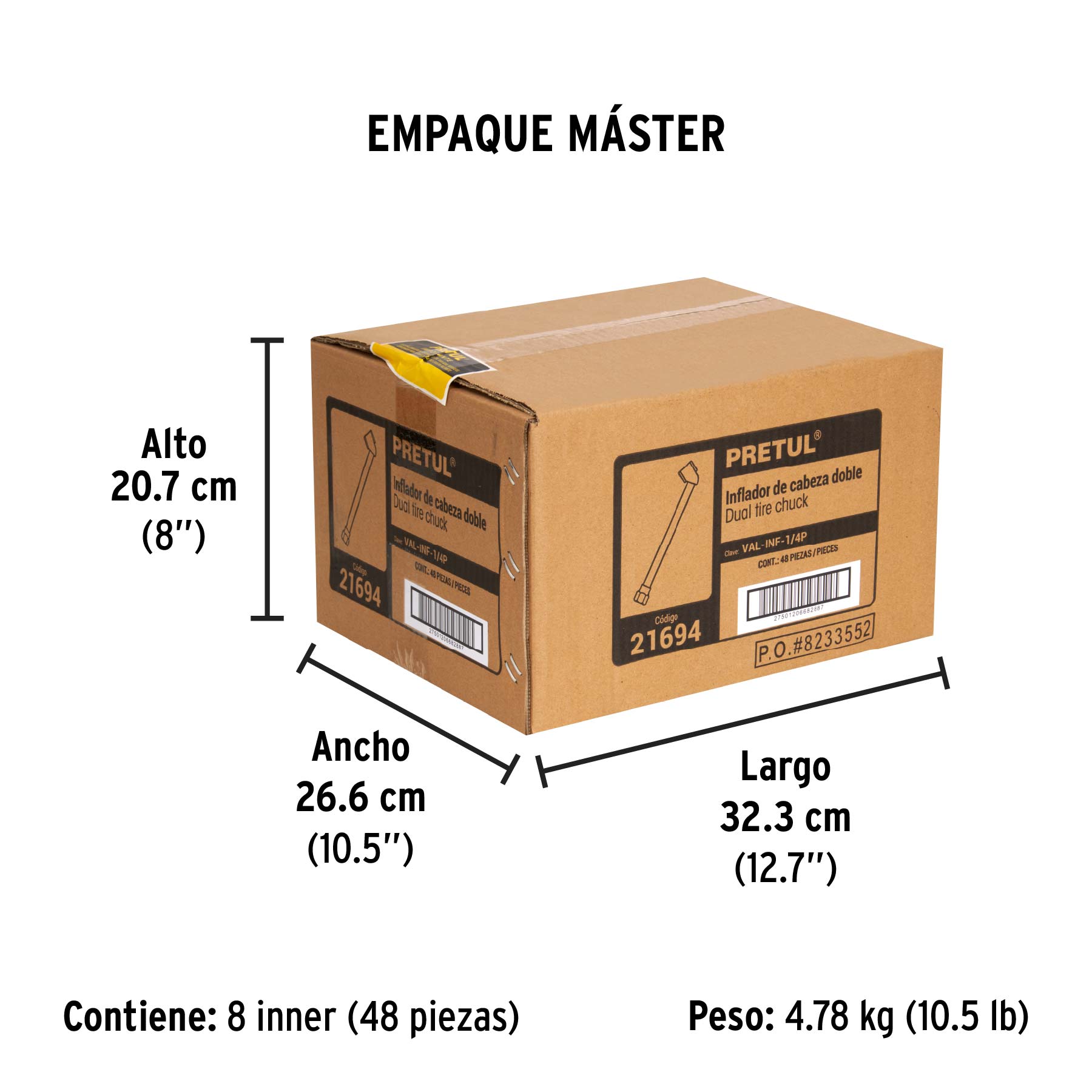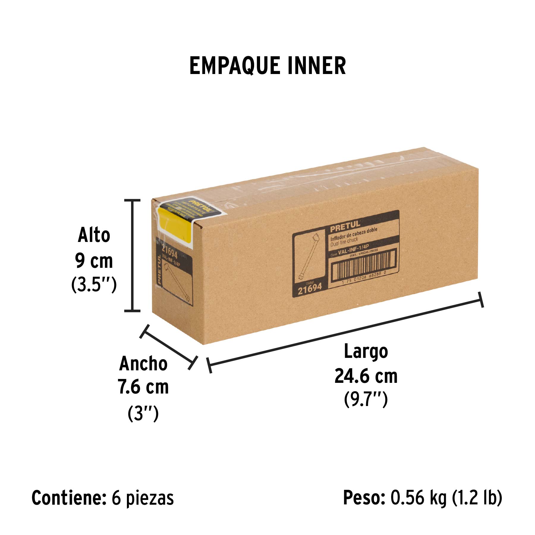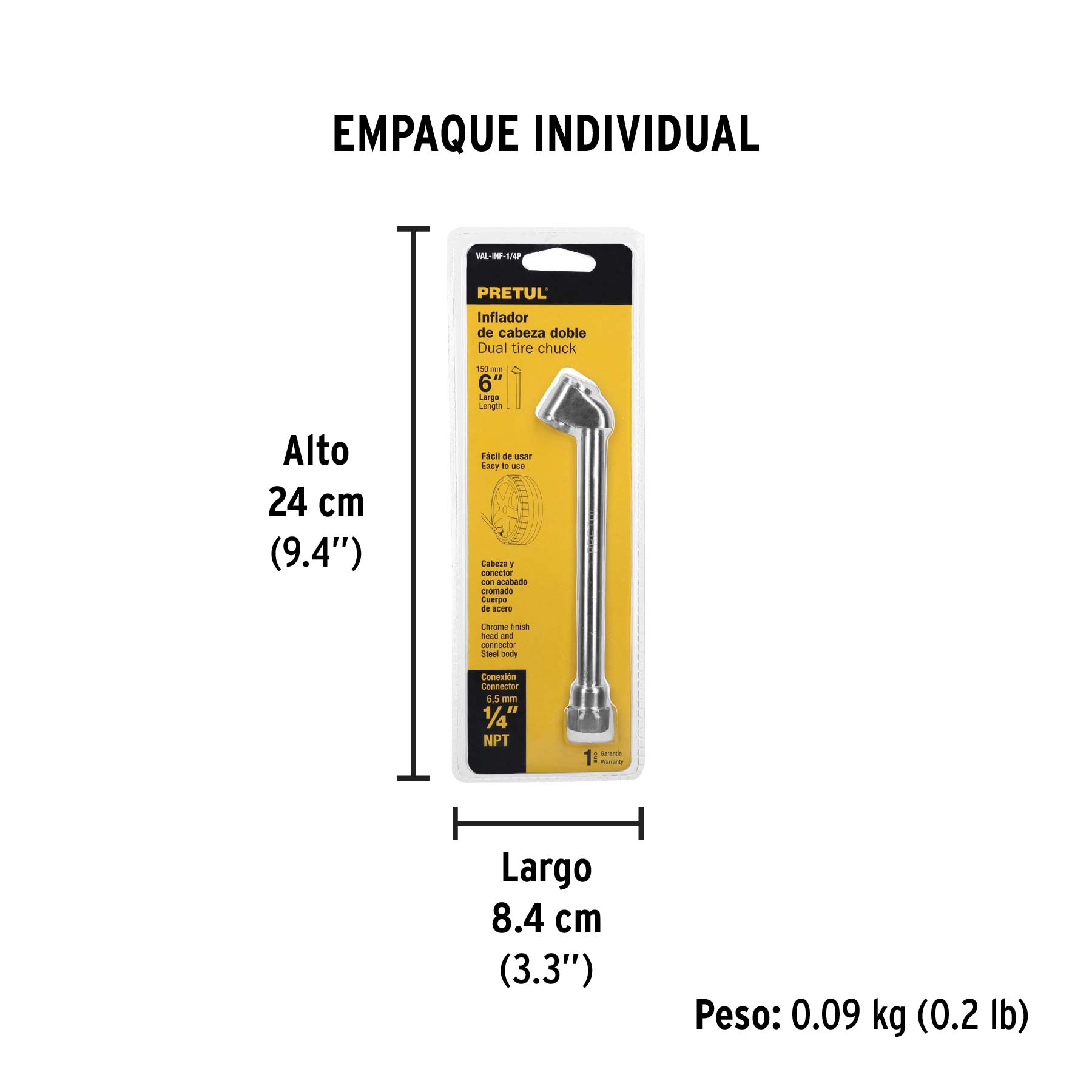 Inflador de cabeza doble, cuerda 1/4" NPT, PRETUL