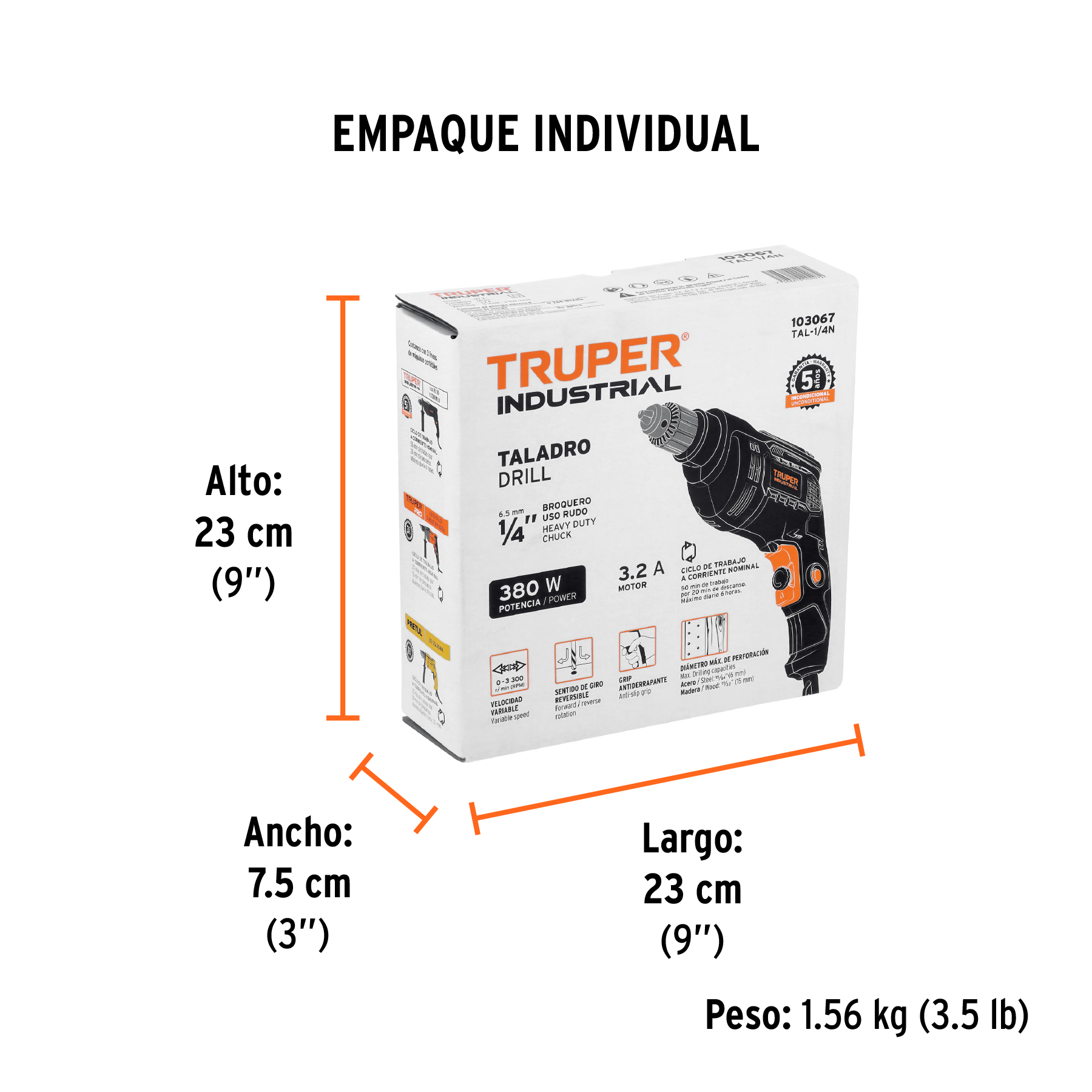 Taladro 1/4", 380W, TRUPER INDUSTRIAL