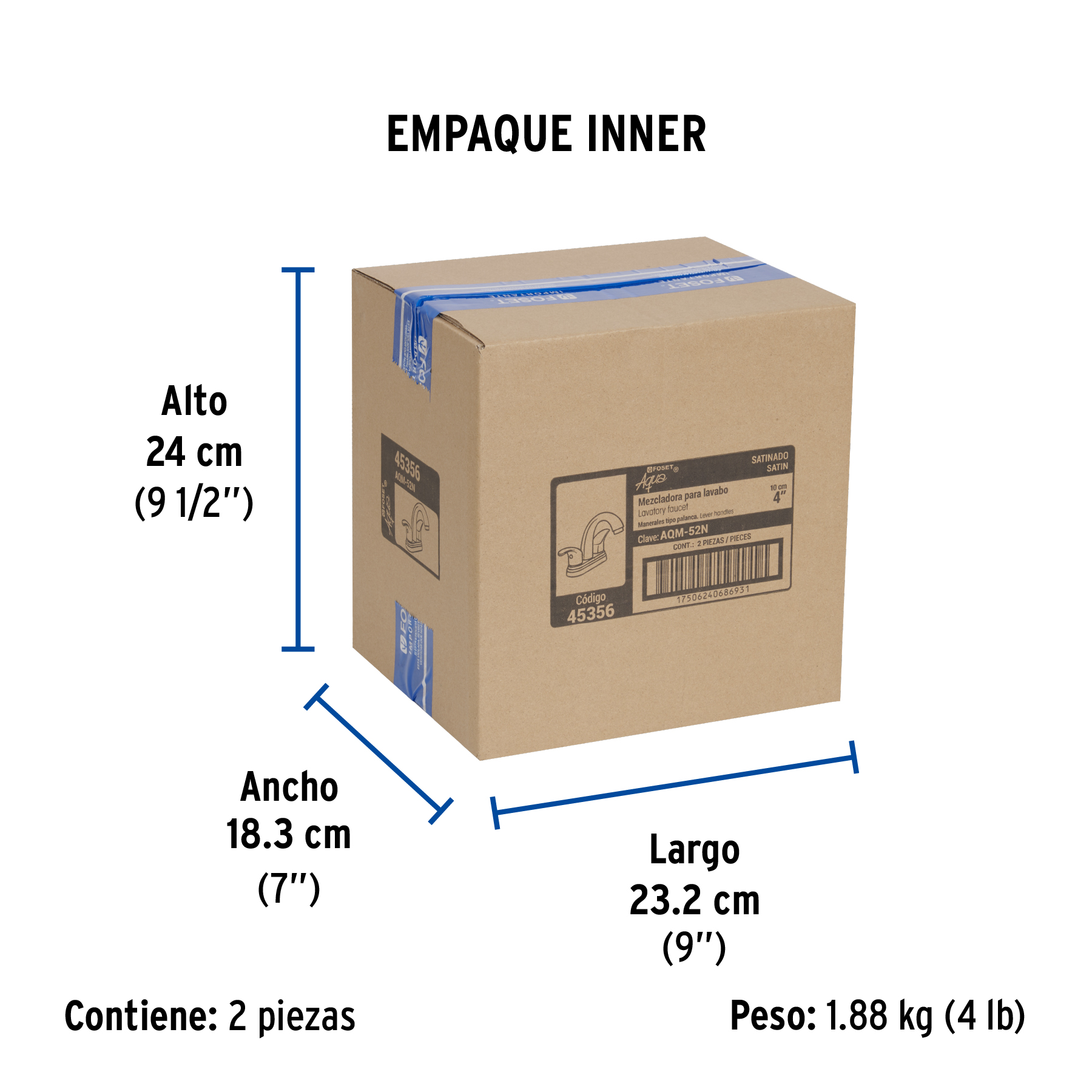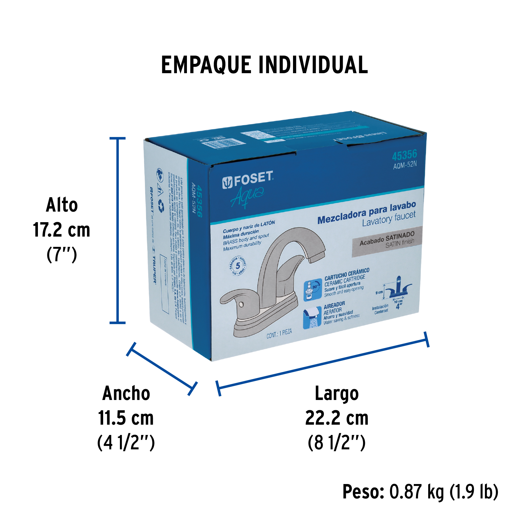 Mezcladora lavabo 4" satín, nariz curva, palanca, AQUA
