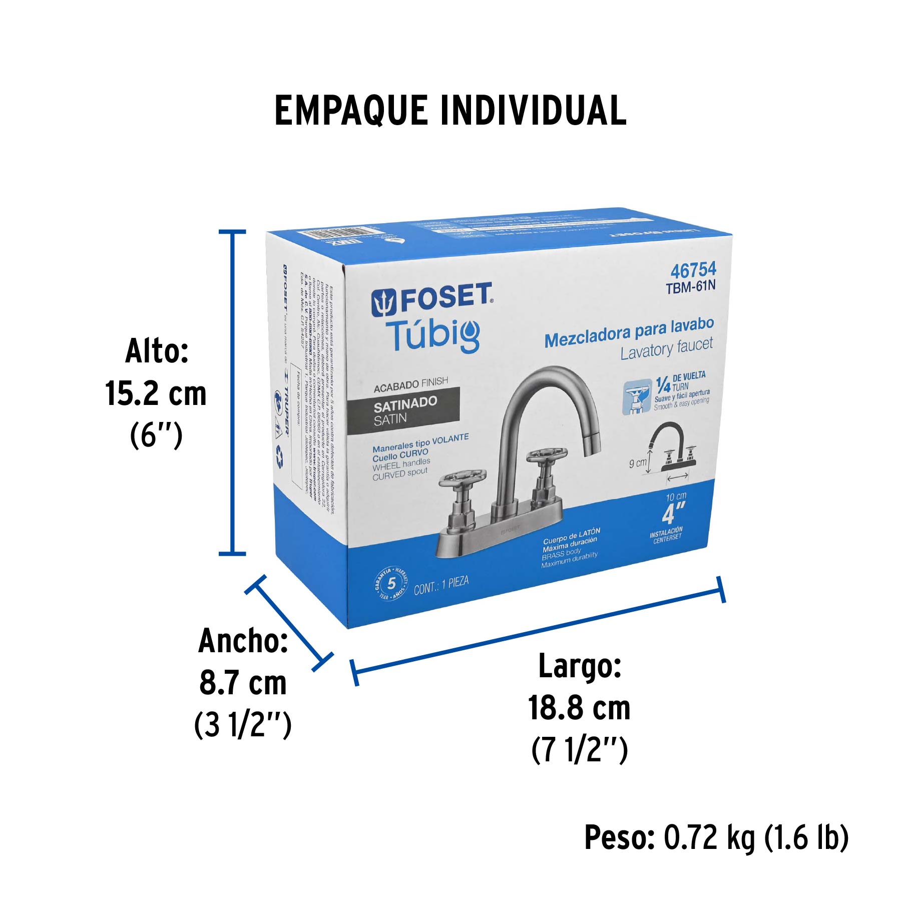 | Distancia entre taladros | 4" |