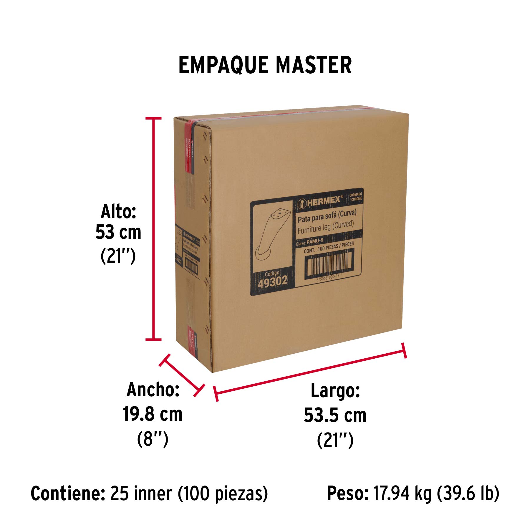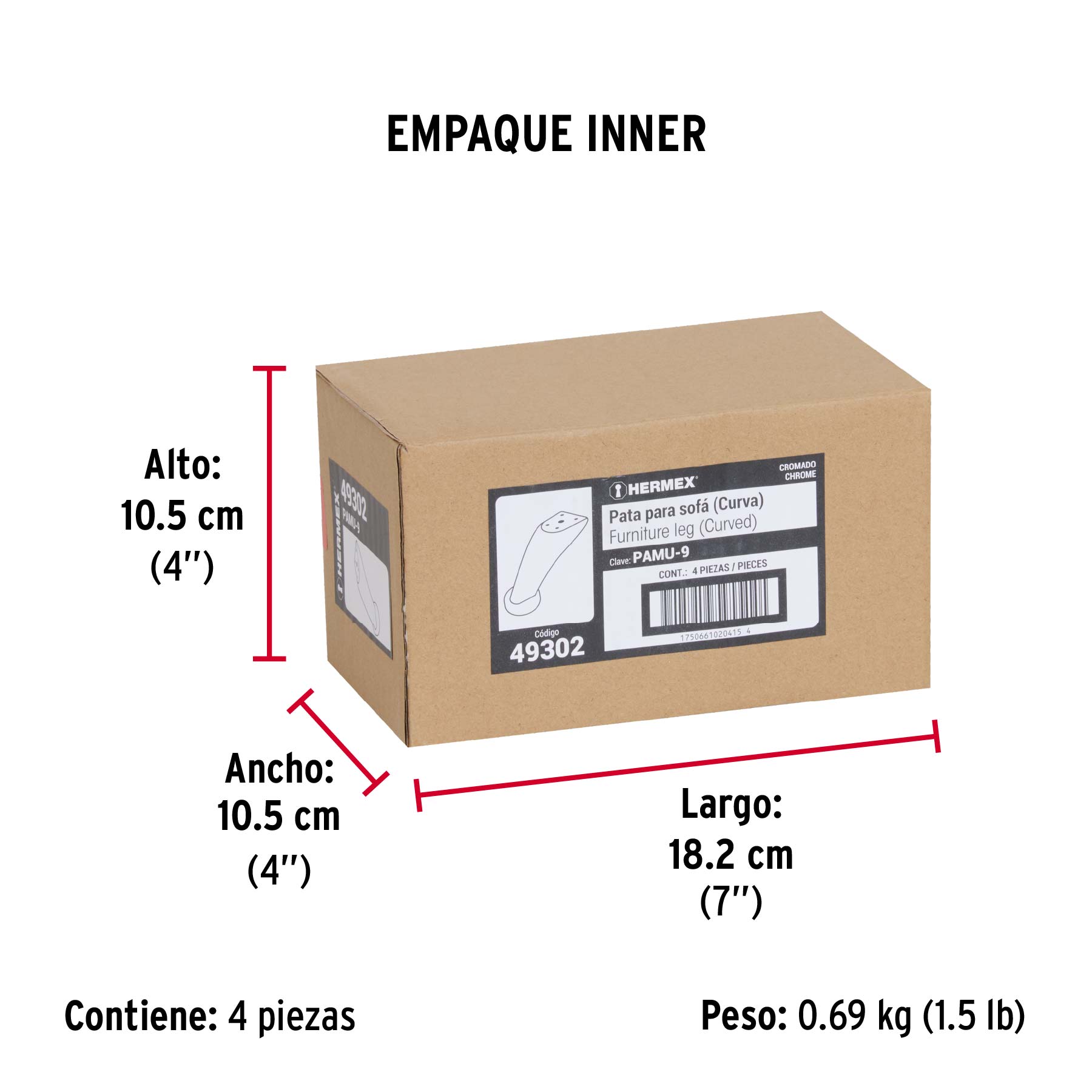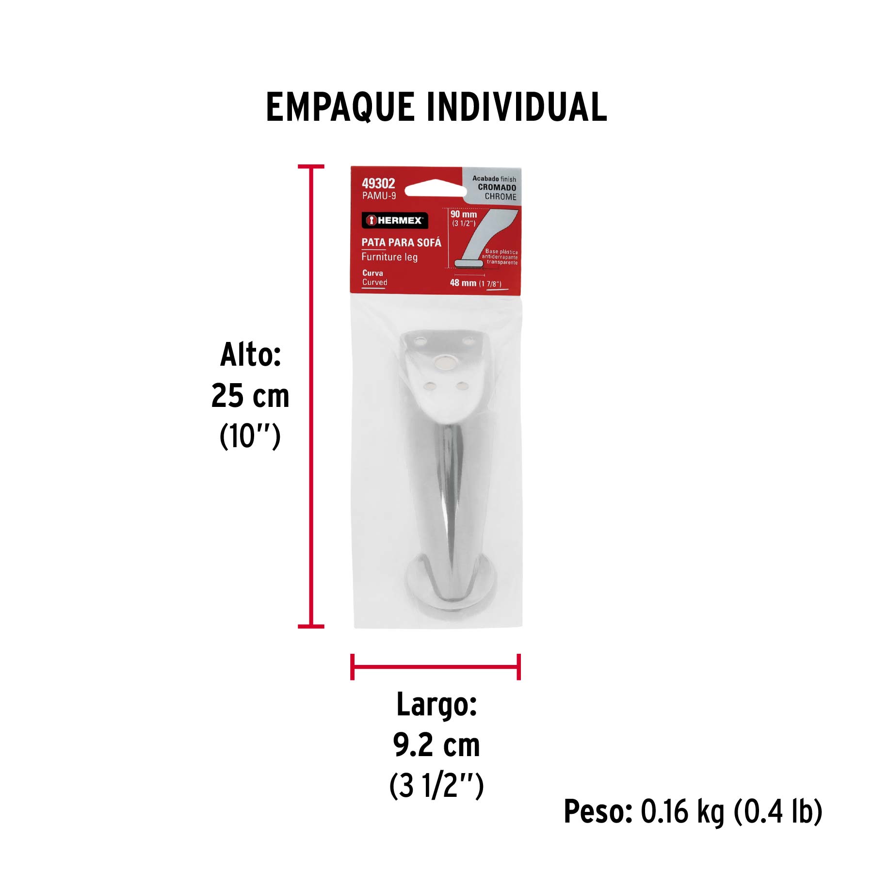 Pata para sofá y mueble, cromo, 90 mm altura, HERMEX